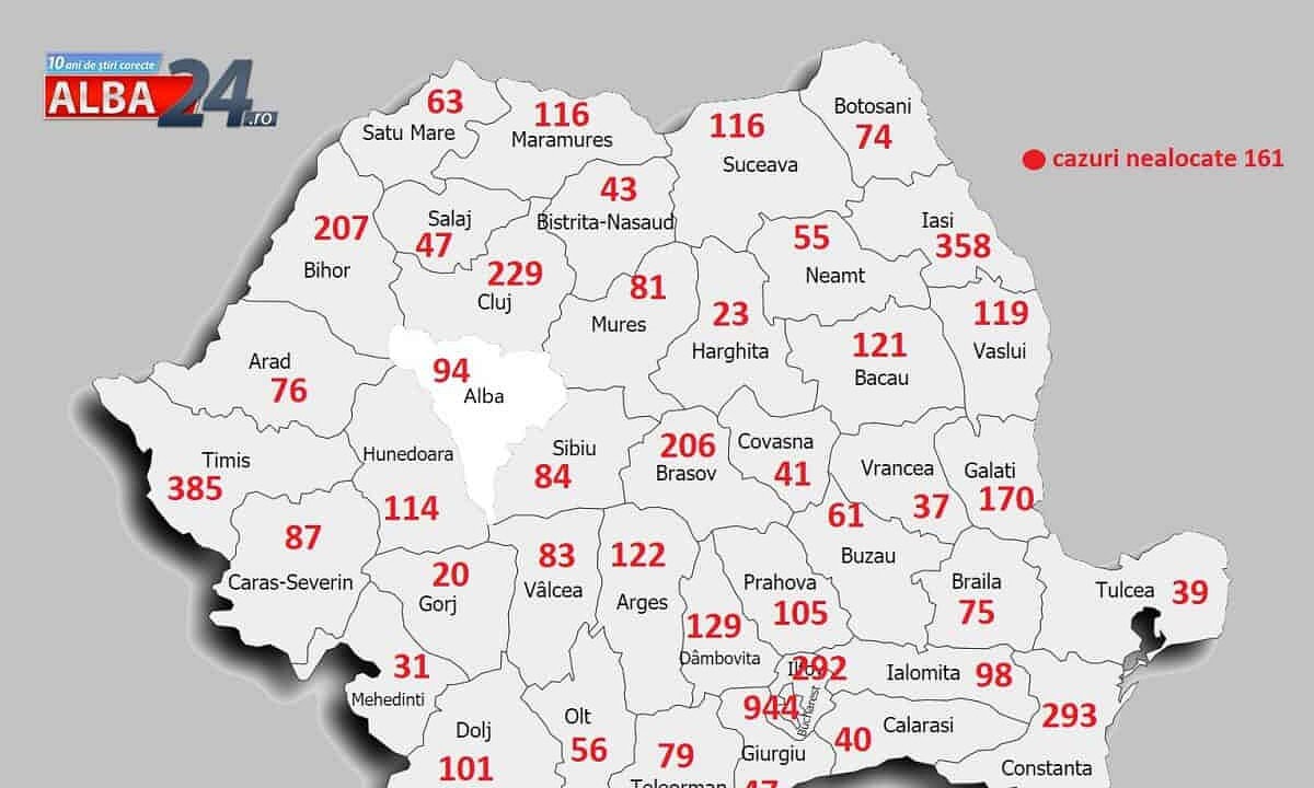 Alba – 12587 – 90 – 1,87 (94 cazuri noi, potrivit DSP Alba)