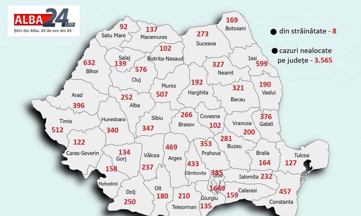 Bihor, Iași, Timiș, Mureș și Argeș au înregistrat de asemenea număr foarte mare de infectări.