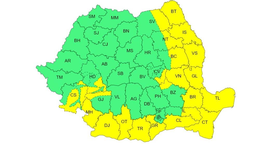 Tot în acest interval, ANM a emis cod galben de ninsori viscolite şi strat de zăpadă pentru judeţele Botoşani, Iaşi, zona joasă a judeţelor Suceava, Neamţ, Bacău, precum şi zona de munte a judeţelor Caraş-Severin, Hunedoara, Gorj, Buzău, Vrancea şi Covasna.