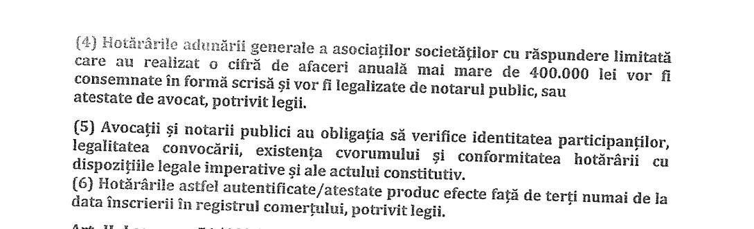Sunt vizate firmele cu cifre de afaceri de peste 400.000 de lei. Acestea ar trebui să plătească un avocat sau un notar care să le ateste hotărârile luate în AGA.