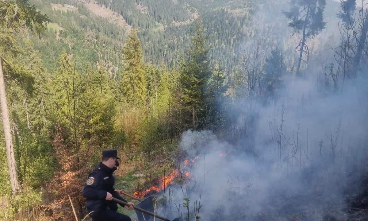 Este vorba despre un incendiu de litieră de pădure pe aproximativ 1 ha.