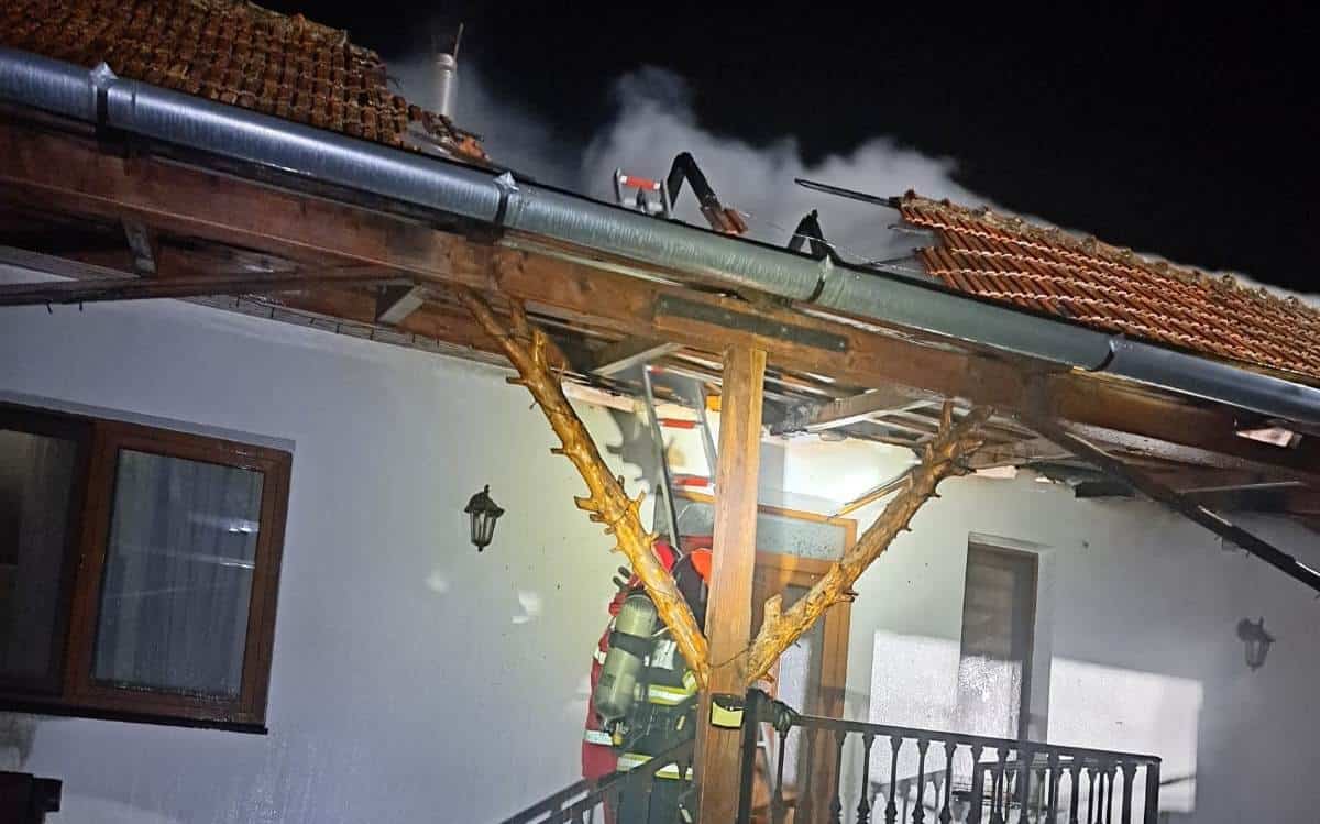 UPDATE FOTO: Incendiu în localitatea Câlnic. Acoperișul unei case a luat foc. Pompierii intervin cu două autospeciale