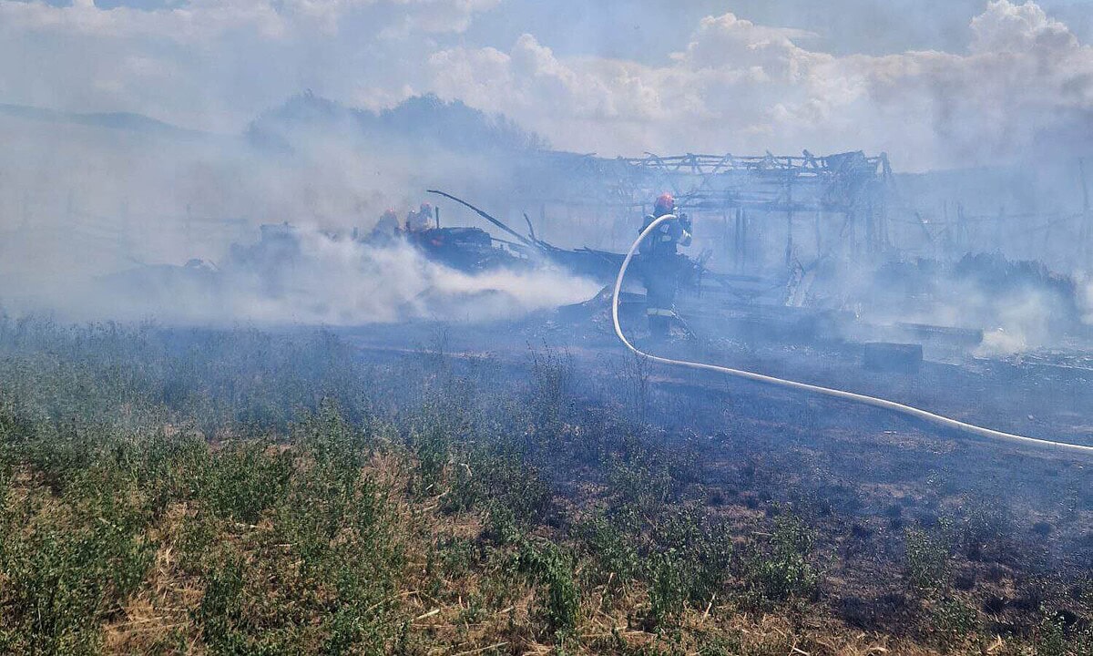 Pompierii au precizat că incendiul se manifestă la un grajd de animale (fără animale in interior) pe o suprafață de aproximativ 100 de metri pătrați și la aproximativ 30 baloți de paie.