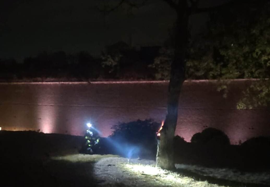 UPDATE FOTO: Incendiu în șanțurile Cetății din Alba Iulia. Un copac a luat foc
