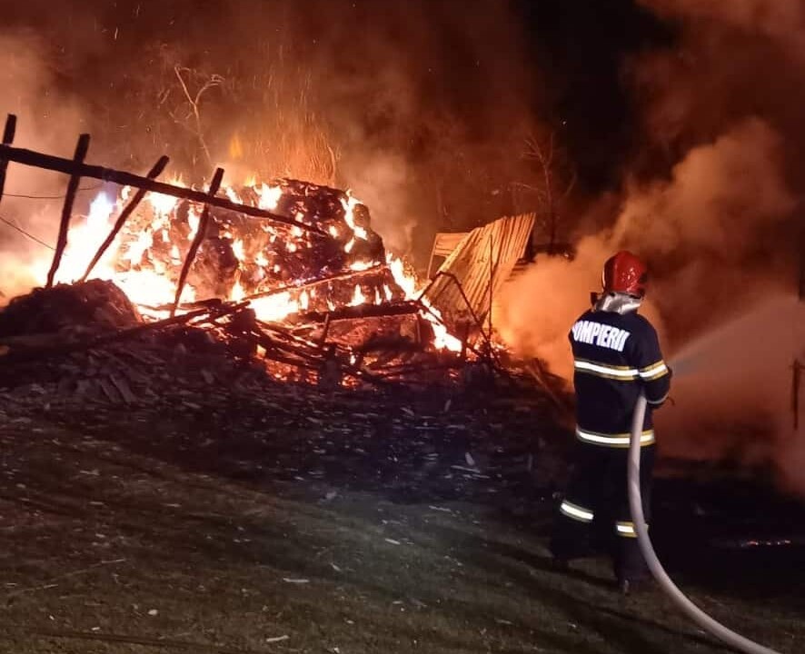 Un grajd în care erau depozitate furaje a luat foc în noaptea de luni spre marți, în localitatea Trâmpoiele din județul Alba.