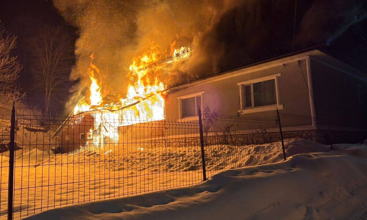 O locuință și o anexă, cuprinse de flăcări