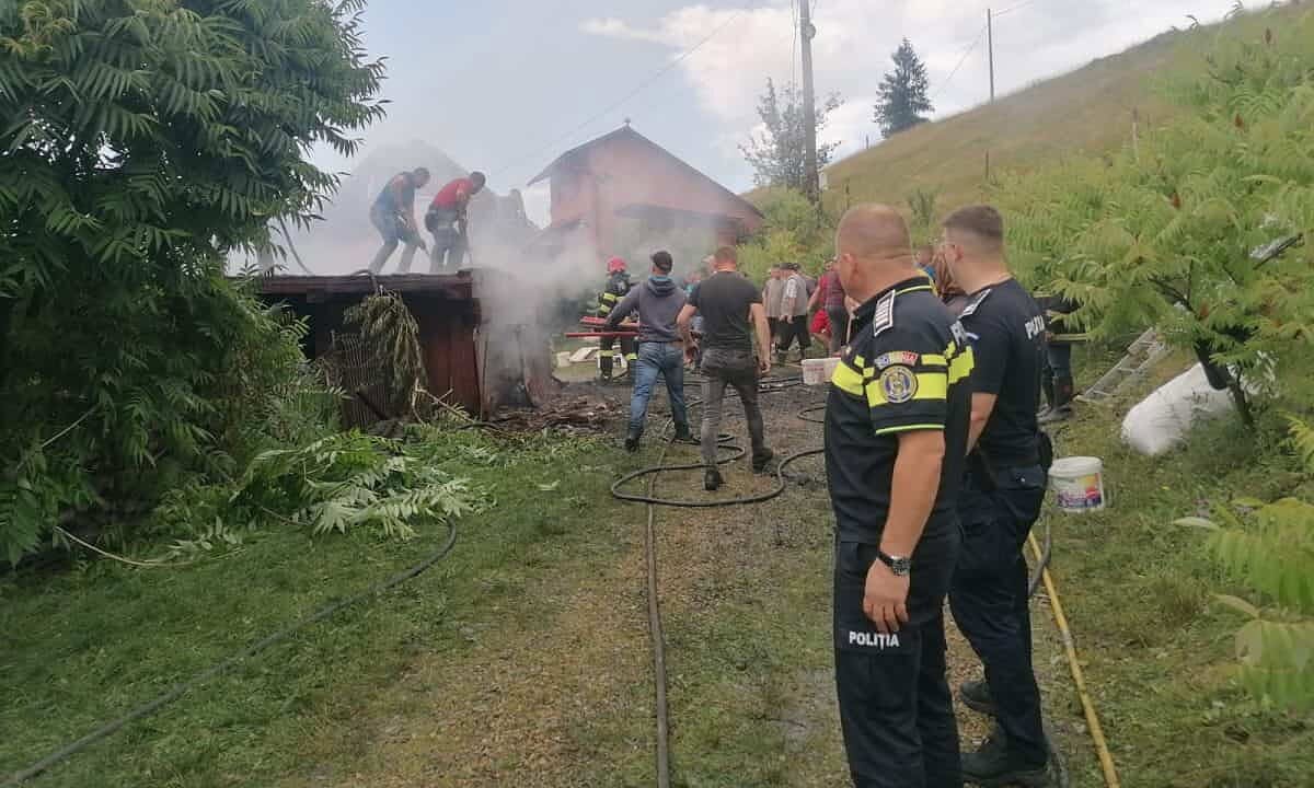 FOTO Incendiu la Arieșeni: O anexă gospodărească a fost cuprinsă de flăcări
