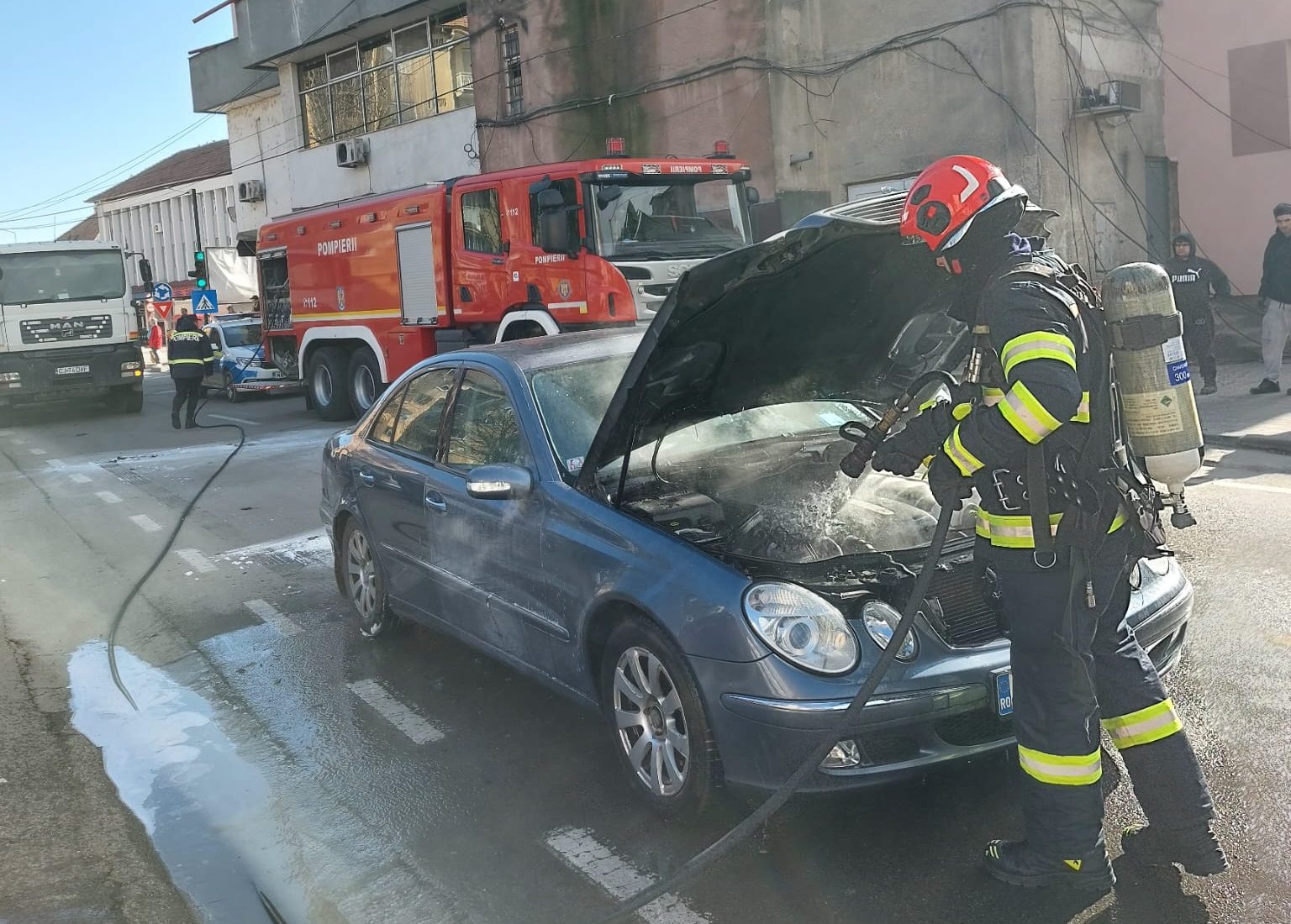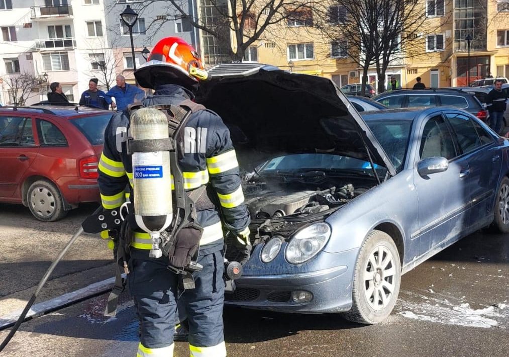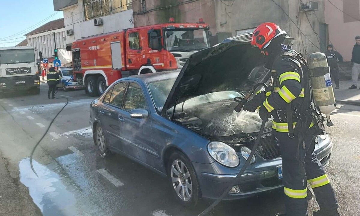 Un autoturism a luat foc miercuri după-amiaza, pe o stradă din municipiul Blaj.
