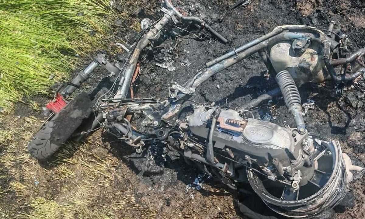 FOTO: INCENDIU la ieșirea din Sebeș spre Daia Română. Un moped s-a făcut scrum