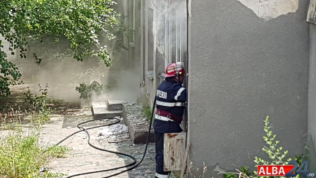 FOTO-VIDEO: INCENDIU la o clădire dezafectată din municipiul Alba Iulia. O încăpere a fost cuprinsă de flăcări