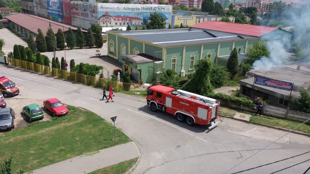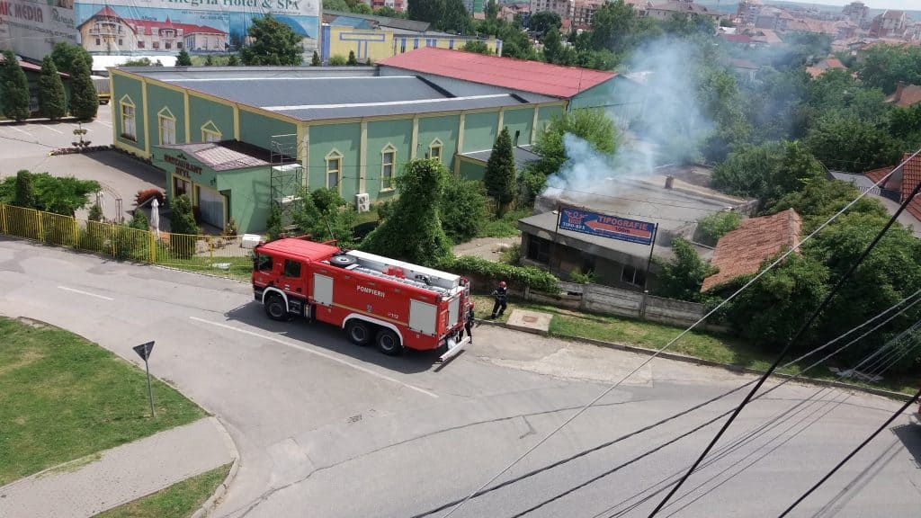 Clădirea se află pe strada Gheorghe Șincai, între fostul Bowling și complexul de săli de evenimente. Potrivit unui martor, înainte de izbucnirea incendiului au fost câteva întreruperi a energiei electrice.