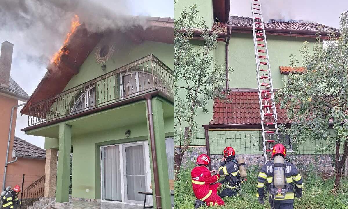 UPDATE, ora 15.32: Incendiul se manifestă la acoperișul unei locuințe pe o suprafață de aproximativ 100 mp, potrivit ISU Alba.