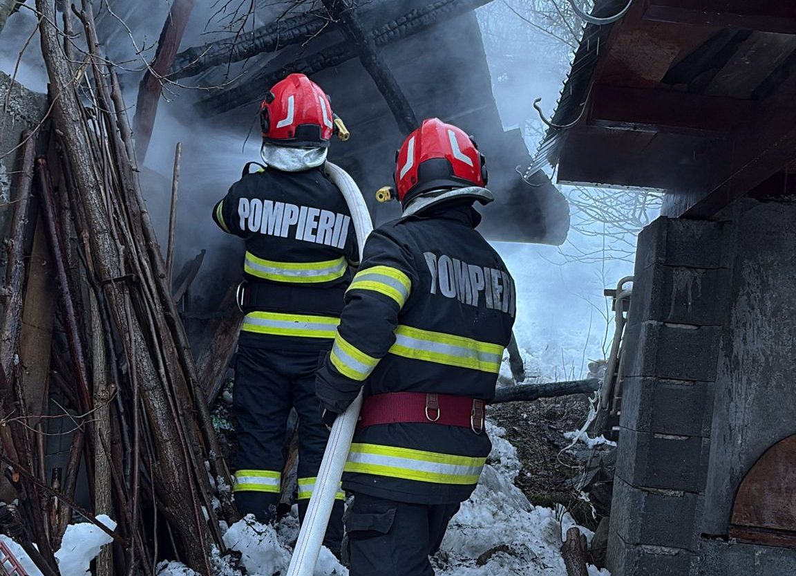 Pompierii intervin pentru stingerea în totalitate a incendiului.