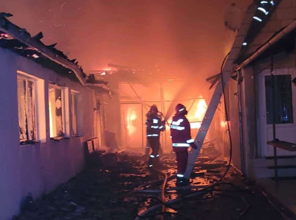 Pompierii acționează pentru limitarea propagării incendiului la o a treia locuință și totodată pentru stingerea acestuia în totalitate.
