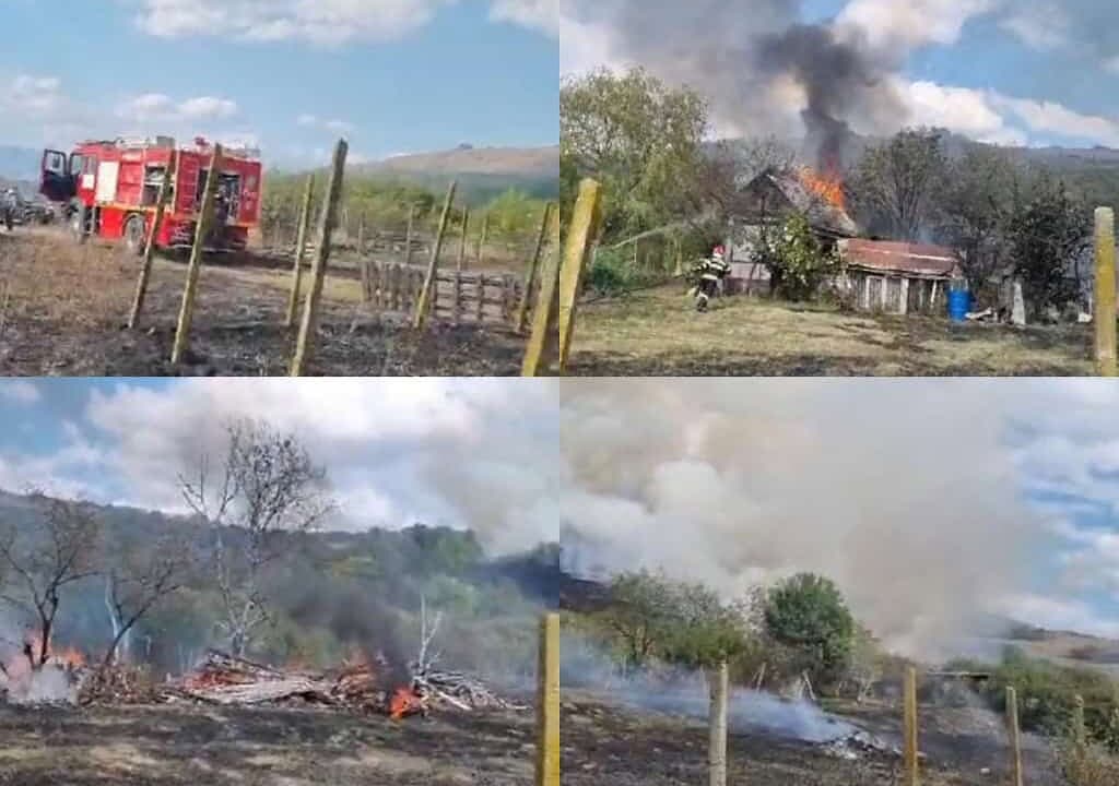 UPDATE: ISU a suplimentat forțele de intervenție cu încă un echipaj cu autospecială de stingere. Ardea vegetație uscată, până la ajungerea forțelor de intervenție incendiul s-a propagat la o locuință.