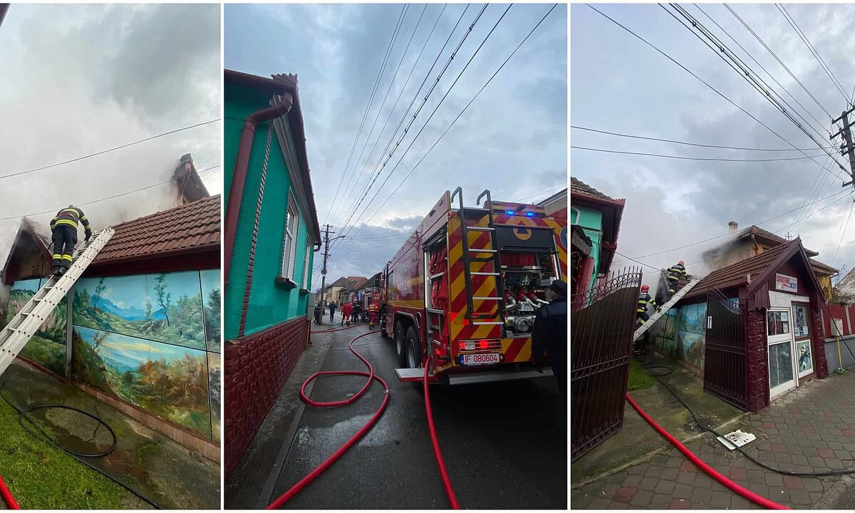 UPDATE FOTO: INCENDIU la Sebeș. O anexă, utilizată ca magazin alimentar, a luat foc. Pompierii intervin cu două autospeciale