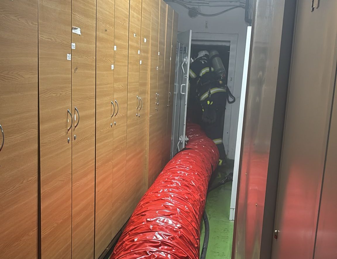 Se lucrează pentru defumarea subsolului și înlăturarea efectelor negative produse de incendiu.