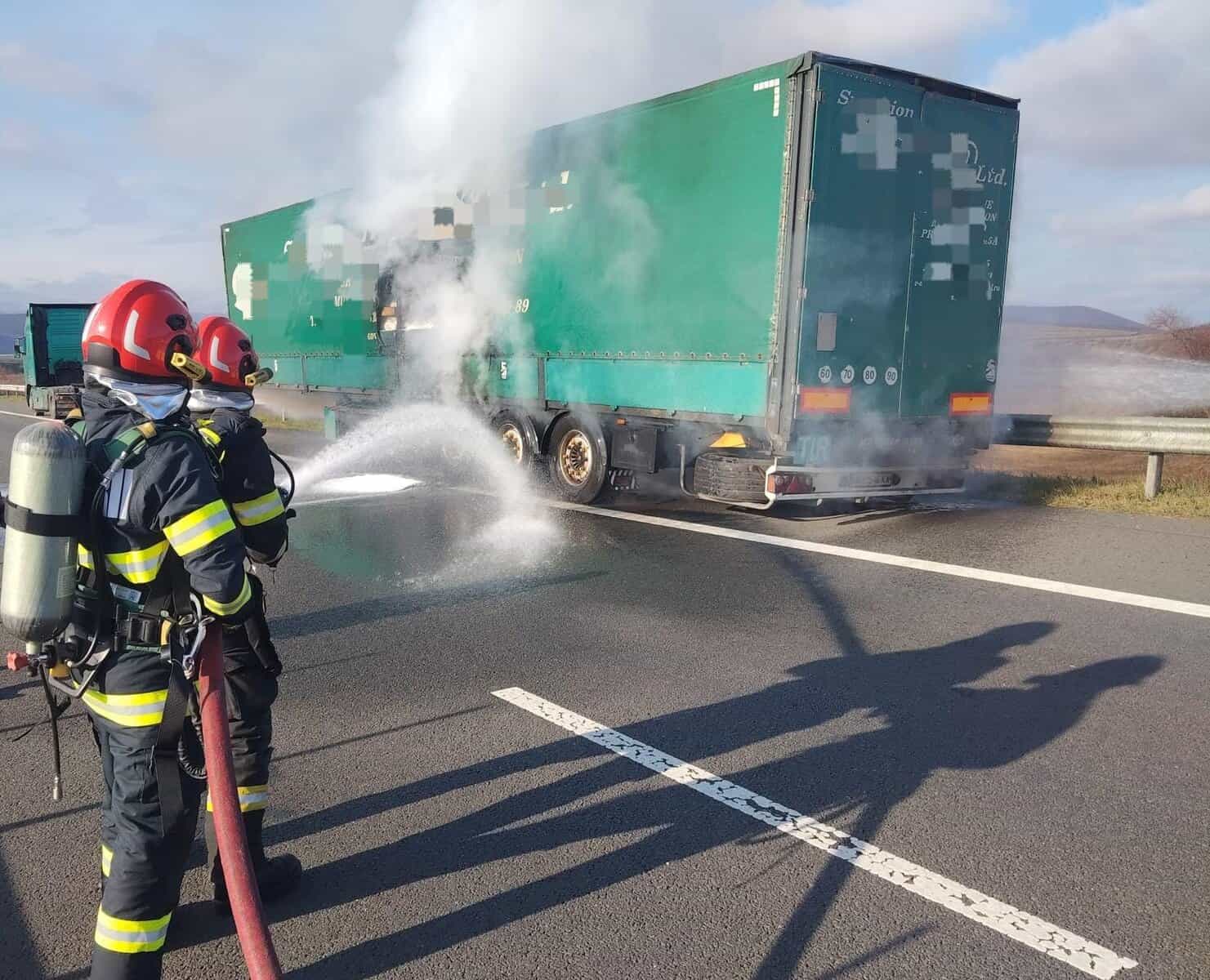 Din informațiile preliminare, ar fi vorba despre un incendiu izbucnit la remorca unui camion.