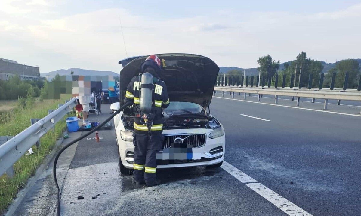 Un incendiu a izbucnit joi după-amiaza, pe Autostrada A10, între Aiud și Teiuș. Focul a izbucnit la compartimentul motor al unui autoturism.