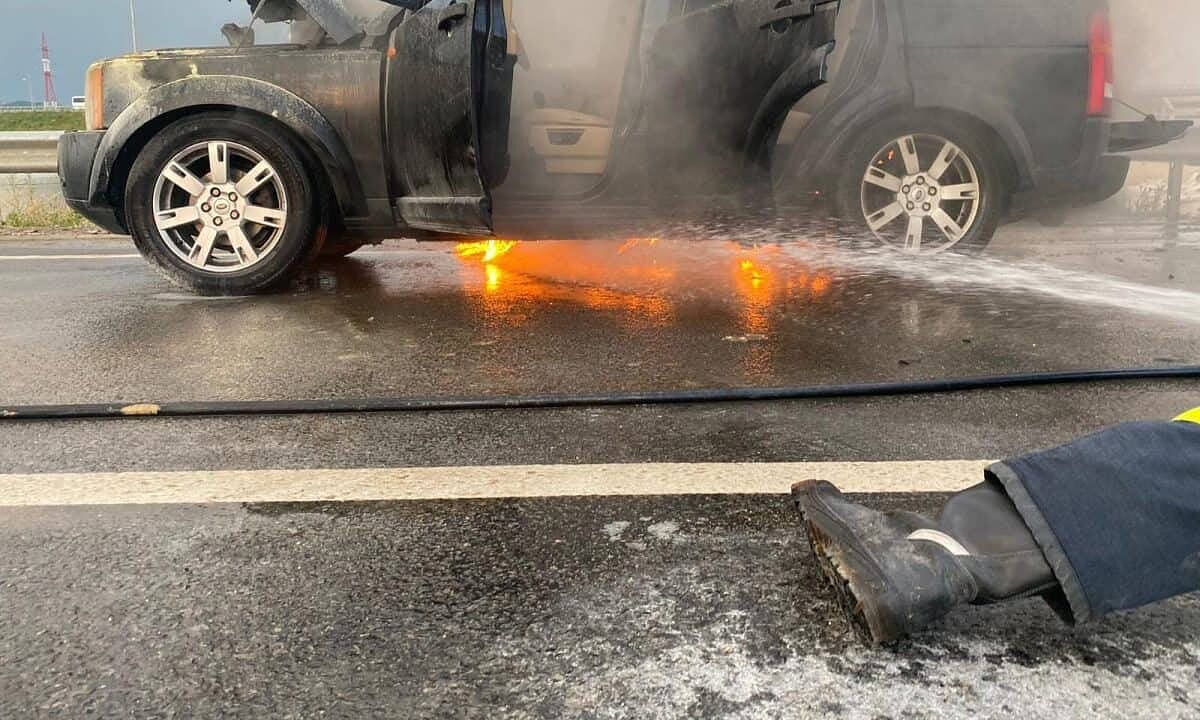Incendiu pe autostrada A10, pe breteaua de ieșire spre Teiuș. Un autoturism a luat foc