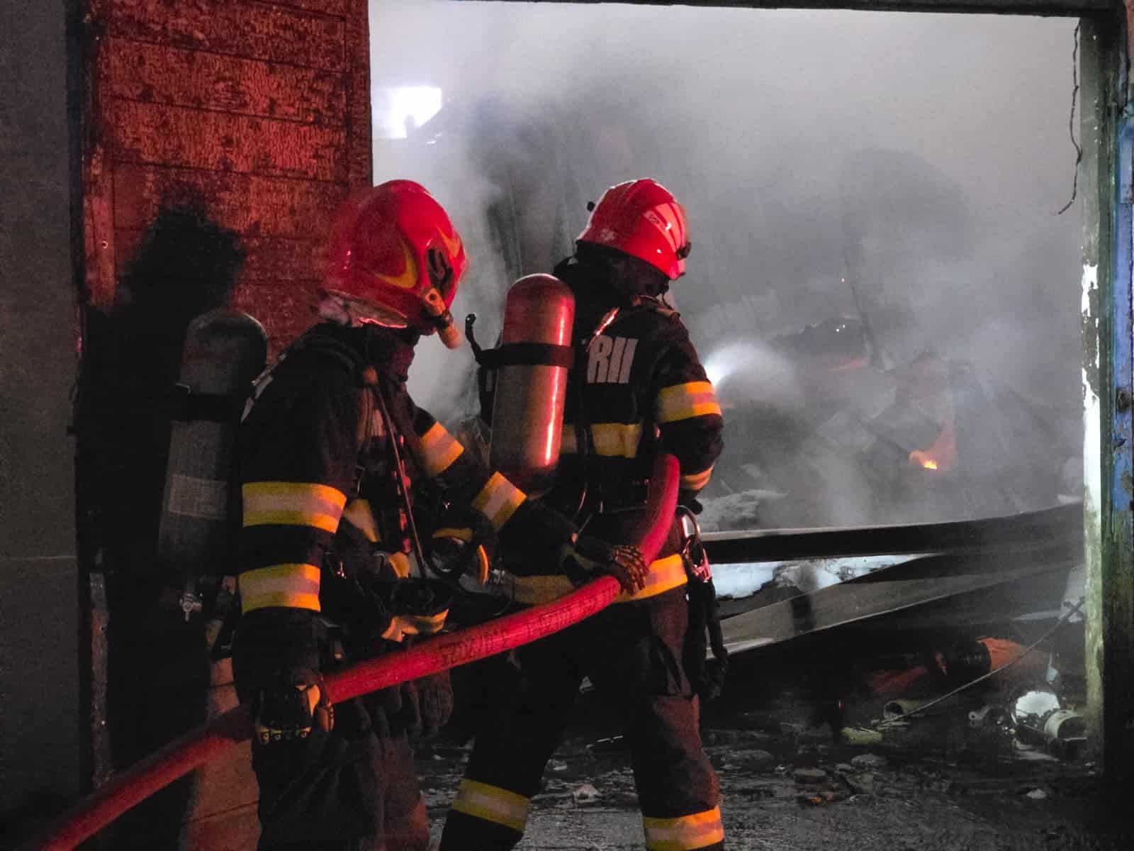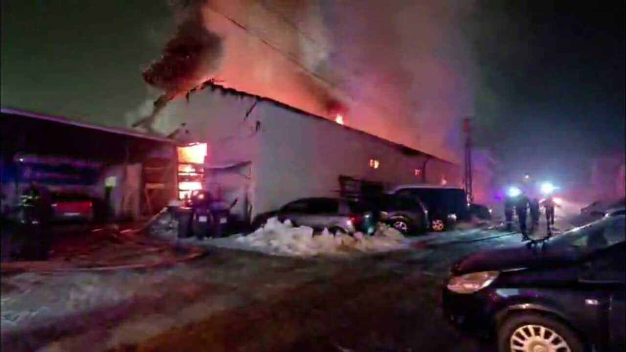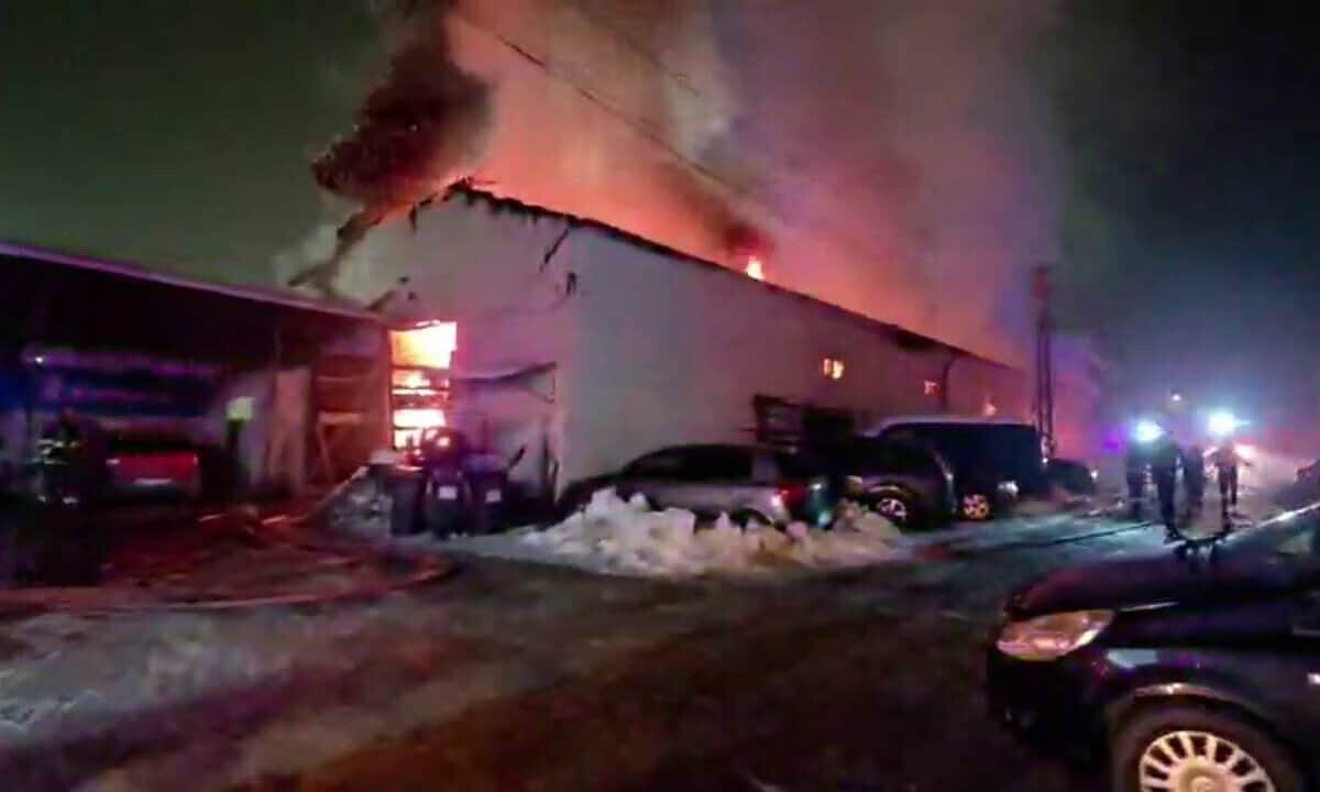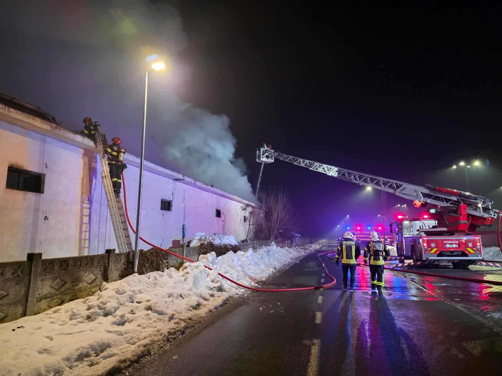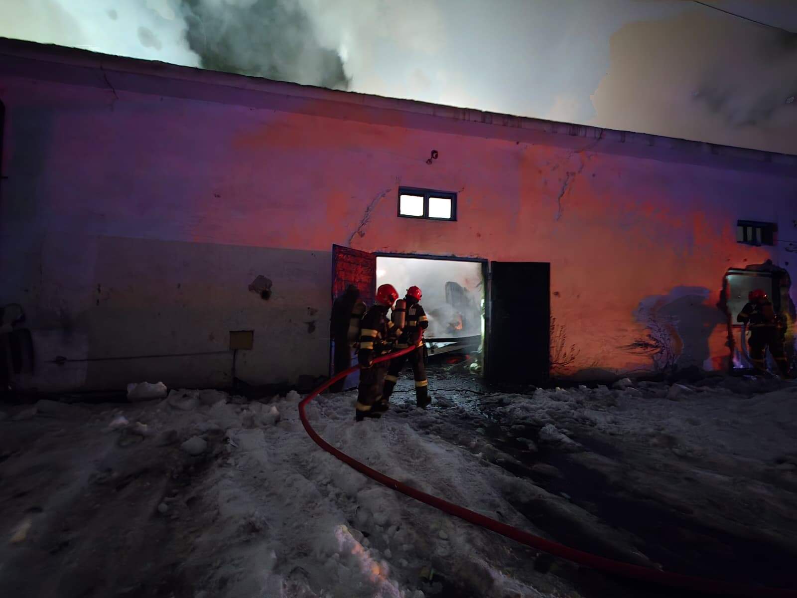 Un incendiu puternic a izbucnit în noaptea de joi spre vineri la Alba Iulia. Focul a cuprins un service auto aflat pe strada Fabricilor.