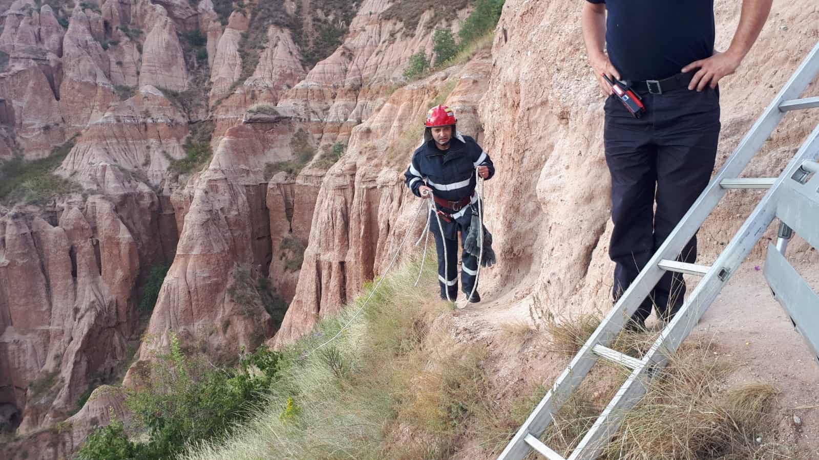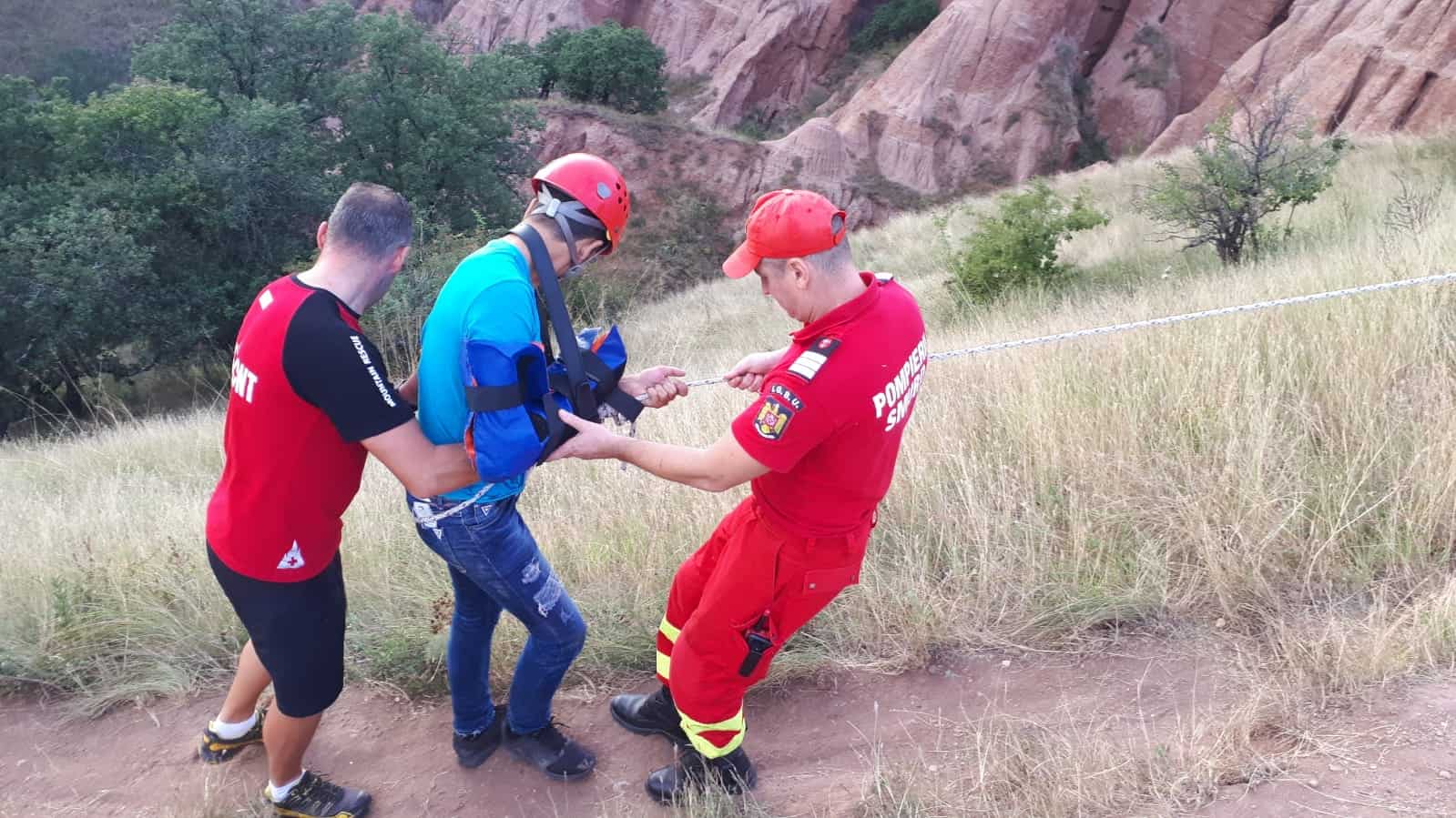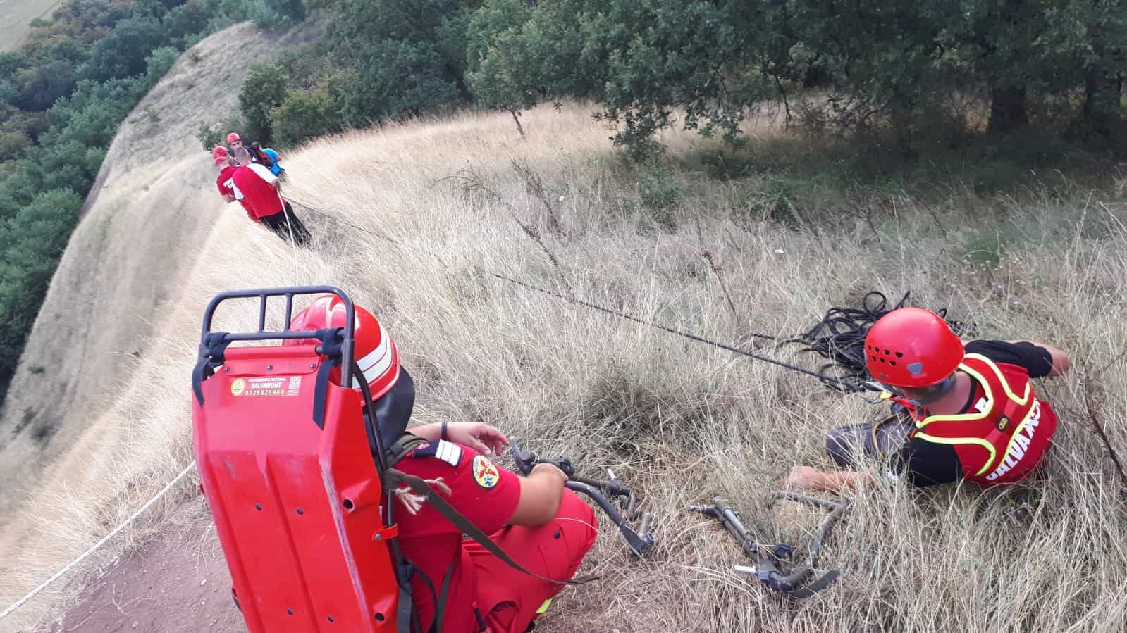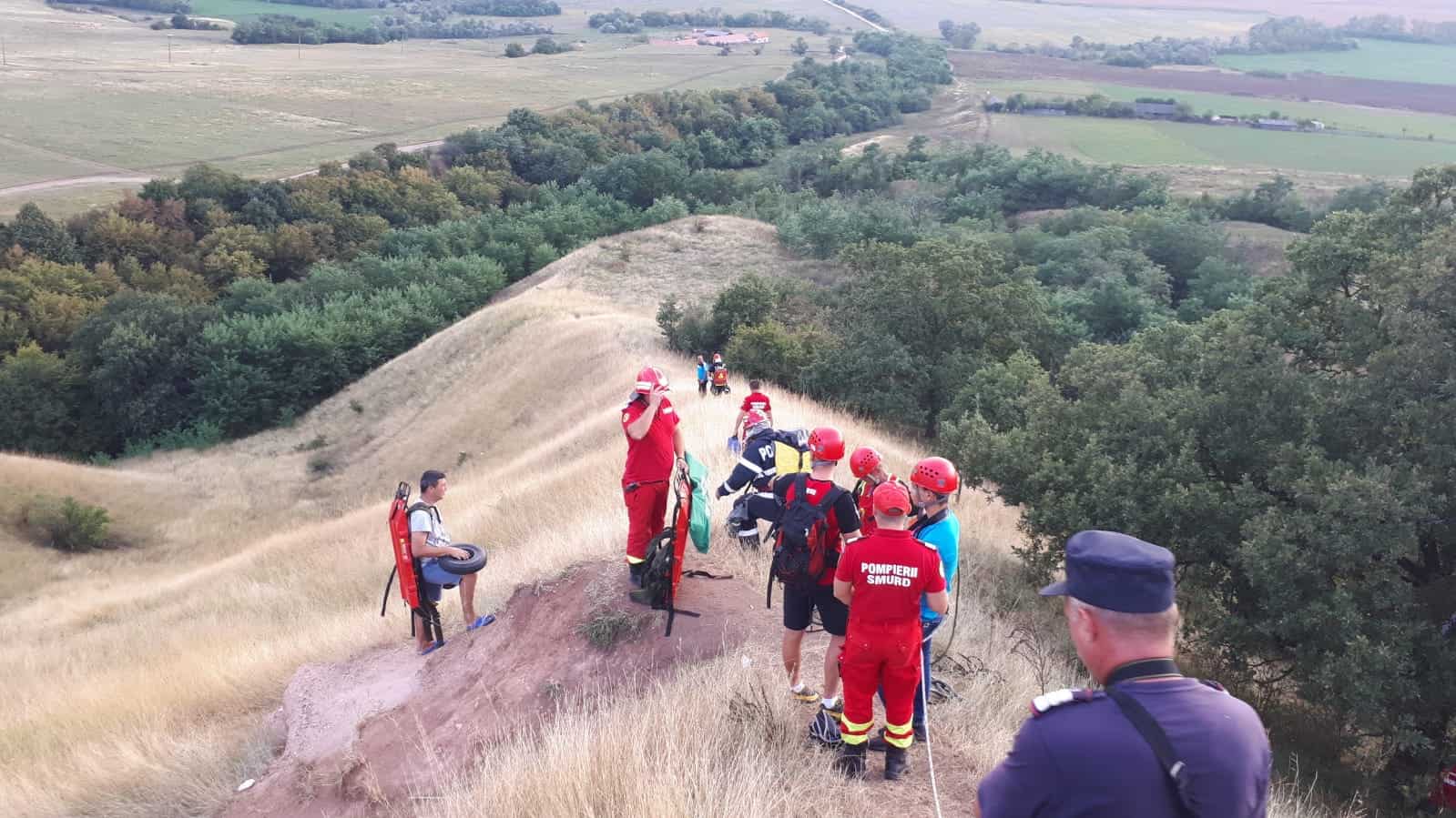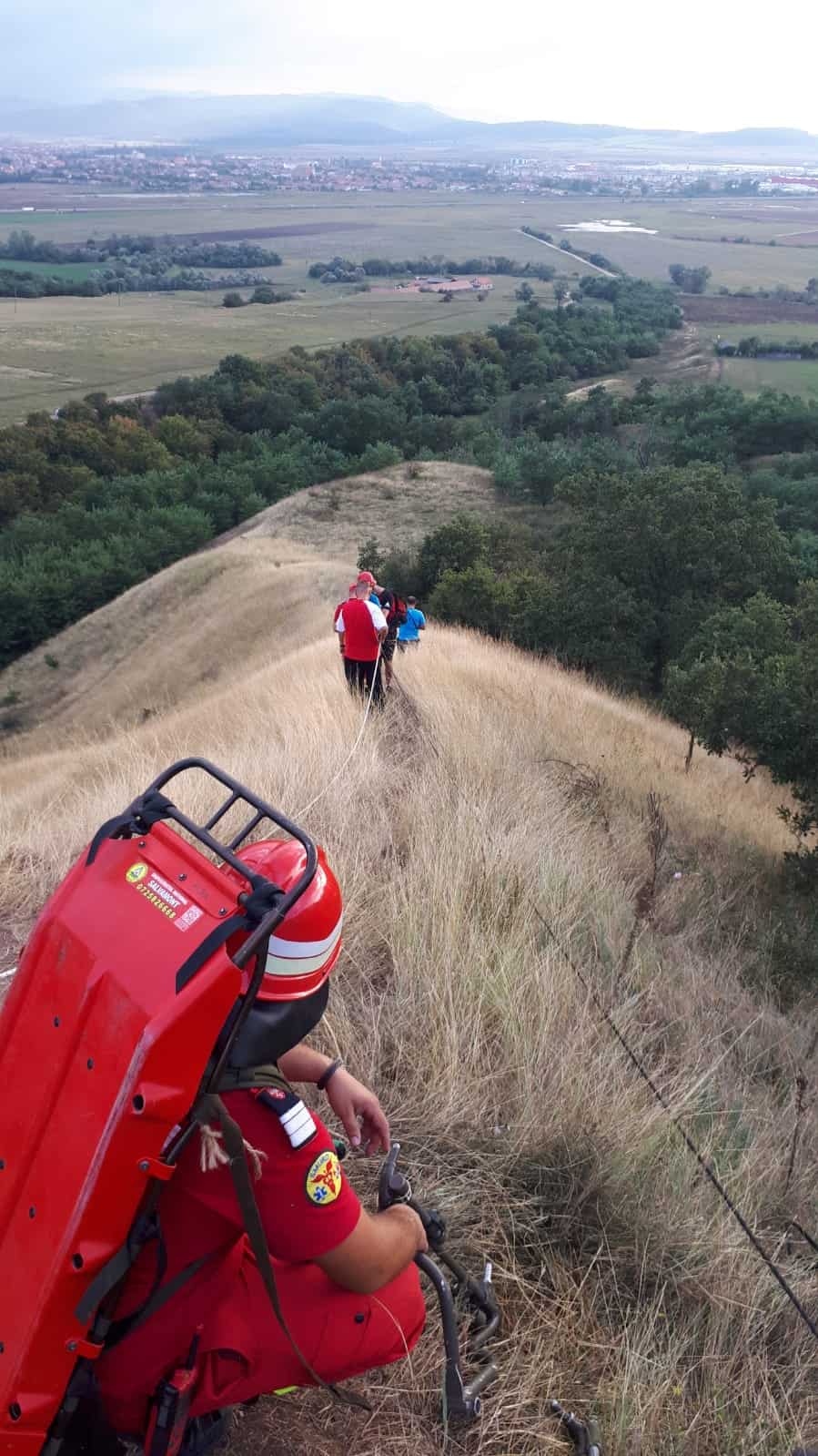 FOTO-VIDEO: Un băiat din Sfântu Gheorghe, salvat de pompieri și salvamontiști după ce a alunecat în zona Râpei Roșii, lângă Sebeș