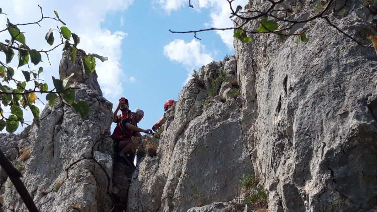 Salvamontiștii spun că acesta a rămas blocat pe stâncă, într-o zona greu accesibilă.