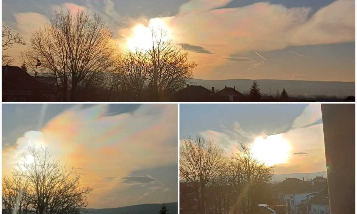 Irizarea norilor: Imagini colorate pe cerul orașului Alba Iulia au fost surprinse marți, de cititorii Alba24. Fenomenul este cunoscut sub numele de "irizare a norilor" sau "cloud iridescence".