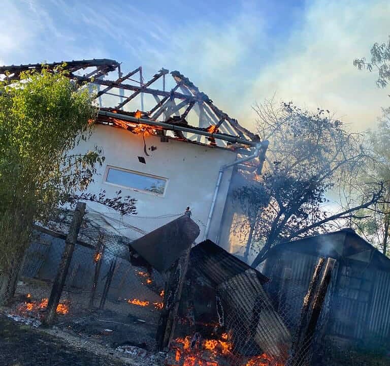 În acest moment nu mai este pericol de extindere și se lucrează în continuare pentru lichidarea incendiului.