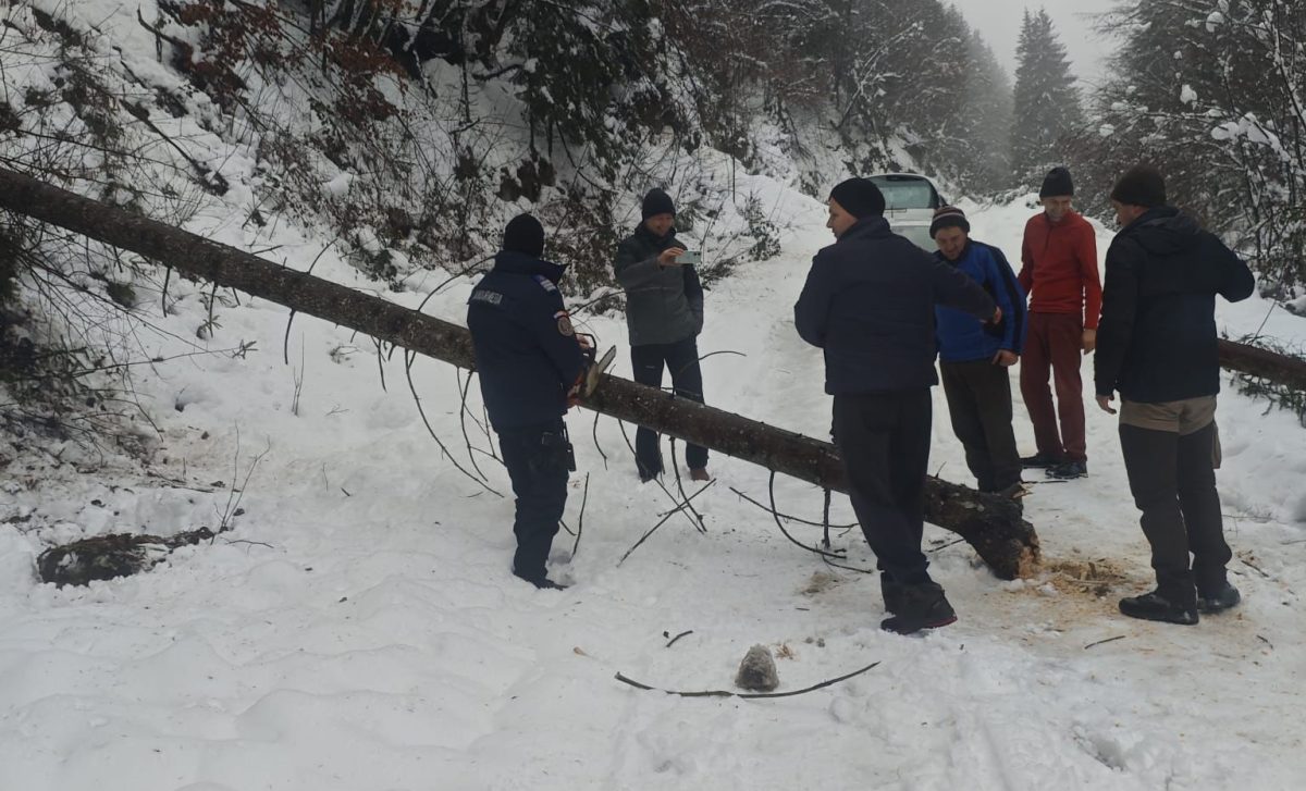 ”La ora 14:11, prin apel la numărul unic de urgență 112, a fost sesizat faptul că, în comuna Bistra, zona Valea Bistrei, trei persoane au rămas impotmolite în zăpadă, iar traficul rutier era blocat din cauza unui copac căzut pe partea carosabilă, care făcea imposibilă înaintarea.