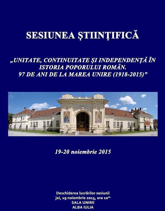JOI: "Unitate, Continuitate şi Independenţă în Istoria Poporului Român. 97 de ani de la Marea Unire”. Sesiune ştiinţifică a Muzeului Unirii din Alba Iulia. PROGRAM