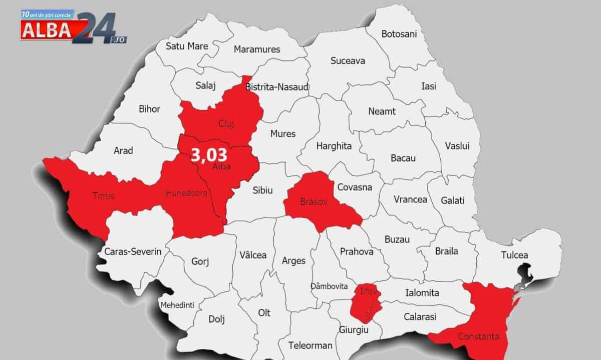 Județul Alba, în scenariul ROȘU. Incidența cazurilor din ultimele 2 săptămâni a depășit 3 la mia de locuitori