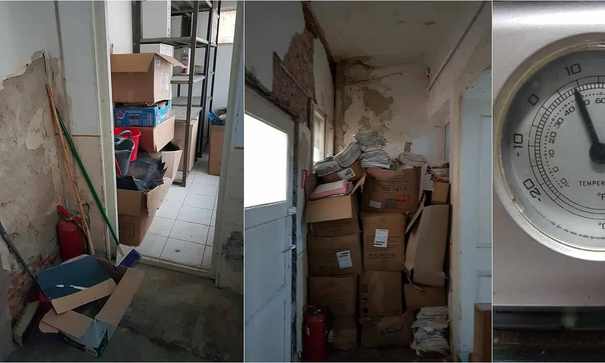După cum se poate vedea în fotografii, arhiva este mai mult o baracă, pe alocuri fiind depozitate, unele peste altele, cutii pline cu sute de dosare și acte medicale.