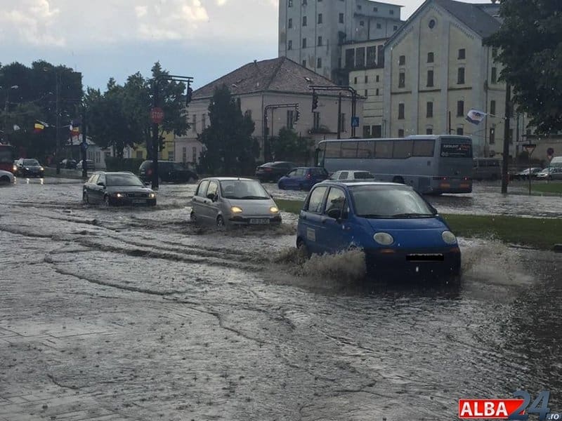 Că Alba Iulia se inundă la fiecare ploaie nu mai este e noutate însă după furtuna de joi parcă situația a fost mai parcă mai rea ca niciodată. Apa care s-a adunat pe străzi ajunge la jumătatea mașinilor. De mers pe jos nici nu se pune problema, poate doar înotând.