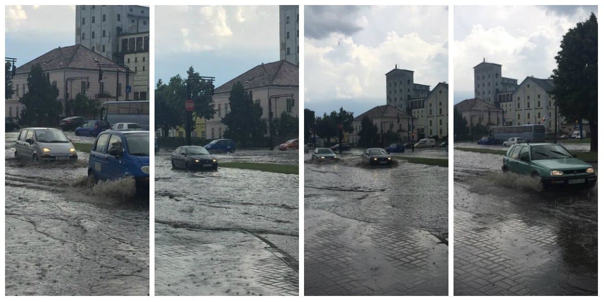 VIDEO-FOTO: Alba Iulia, din nou sub ape. Mai multe străzi inundate după ploaia torențială