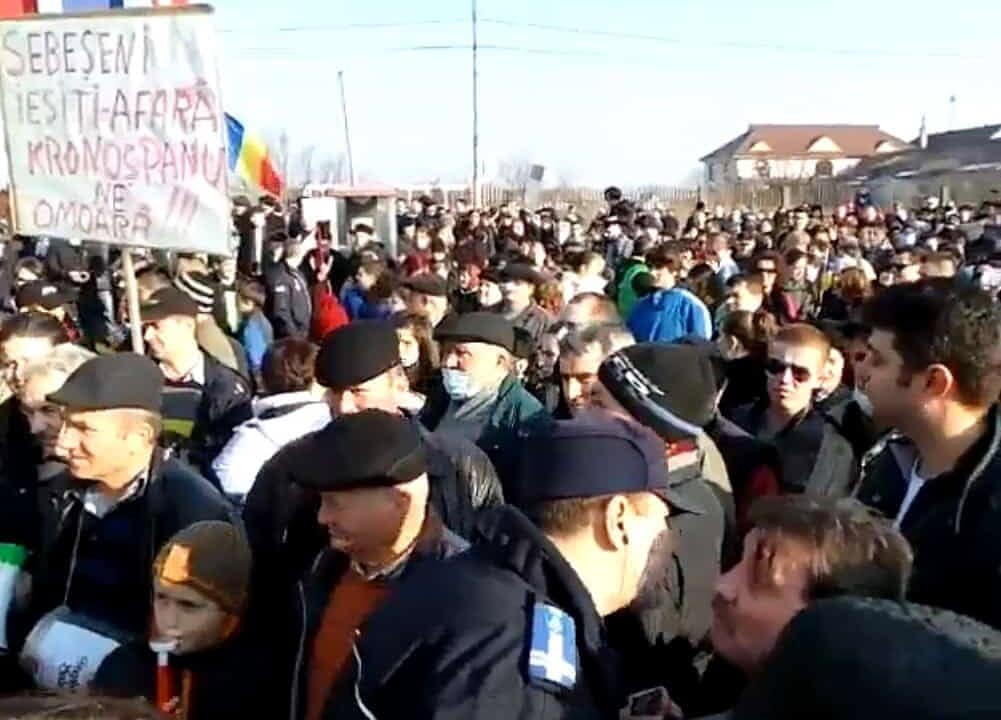 Oamenii au plecat din parcul din faţa Primăriei Sebeş, în marş pe străzile oraşului, “înarmaţi” cu vuvuzele şi pancarte, spre sediul Kronospan, după ora 14.30. Având în vedere situaţia din parcarea companiei, unde sunt adunate camioane, în timpul protestului, organizatorii au făcut apel ca această manifestare să se desfăşoare fără incidente. Astfel, aceştia se vor opri pe trotuarul vizavi de sediul companiei.
