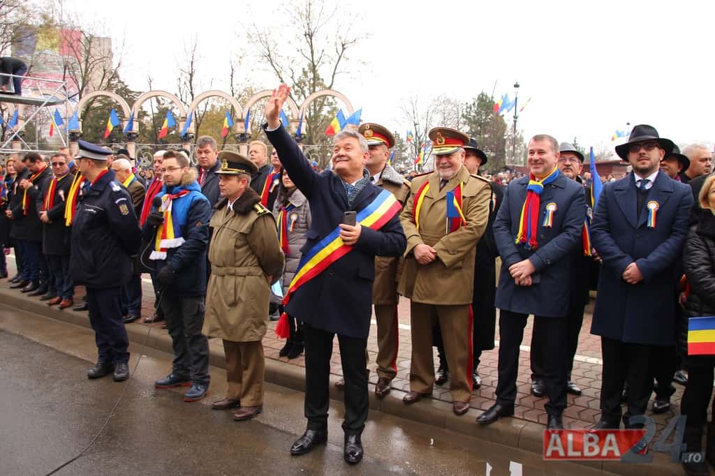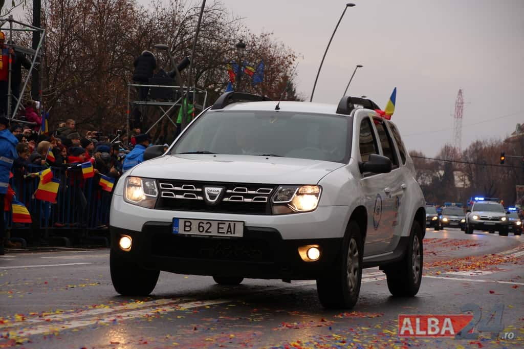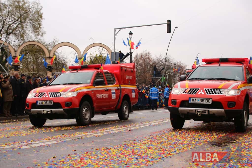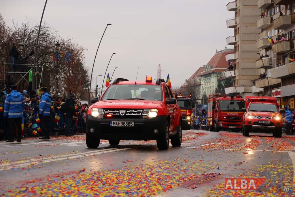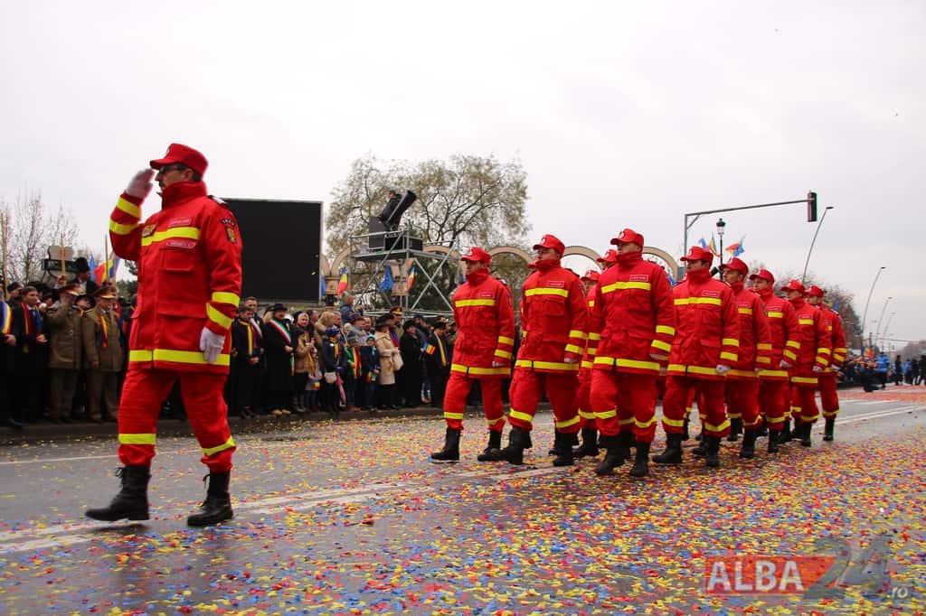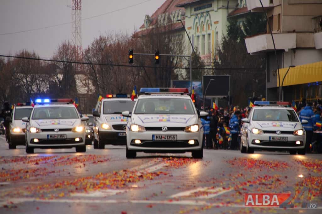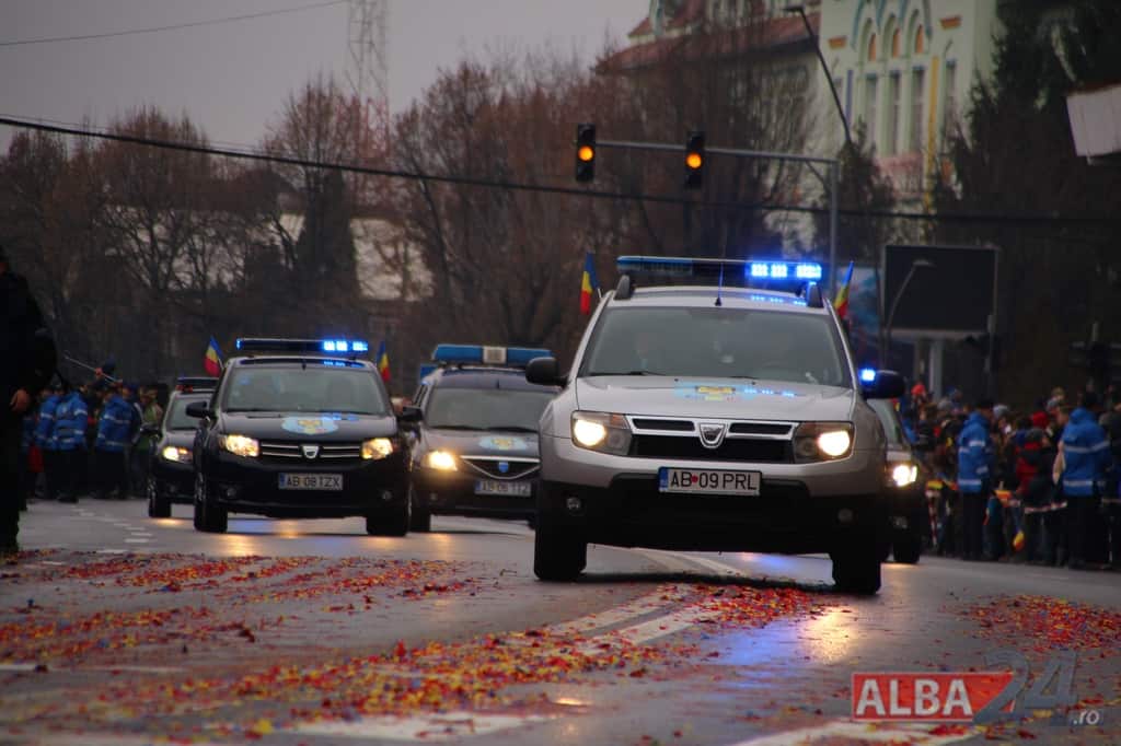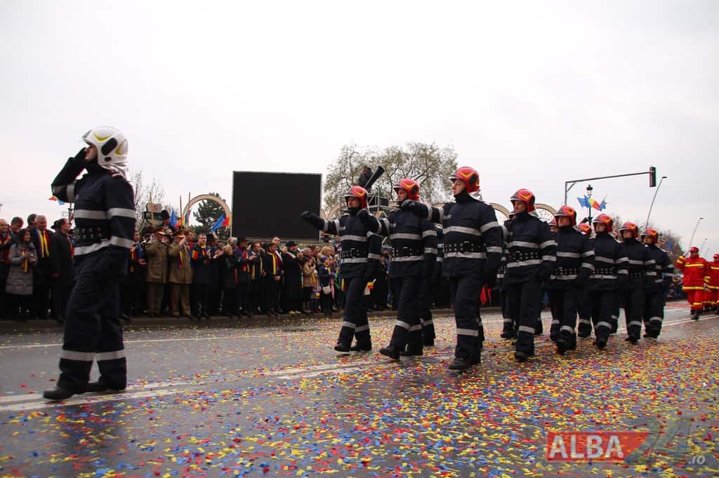 Prin faţa participanţilor la sărbătoarea naţională, în Capitala Marii Uniri, au defilat cadre MApN şi MAI - aproximativ 400 de oameni, fiind prezentate şi autospeciale, militare şi de la Poliţie, ISU, jandarmi, SRI şi Poliţia Locală.