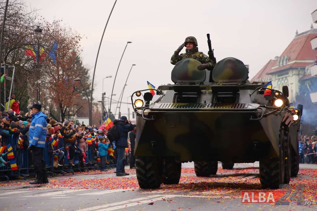 Cu mai puţin fast ca în anii trecuţi, dar tot printre atracţiile principale, în seria evenimentelor organizate de 1 Decembrie la Alba Iulia, defilarea militară s-a desfăşurat vineri, de la ora 13.00, în apropierea Parcului Unirii din oraş.