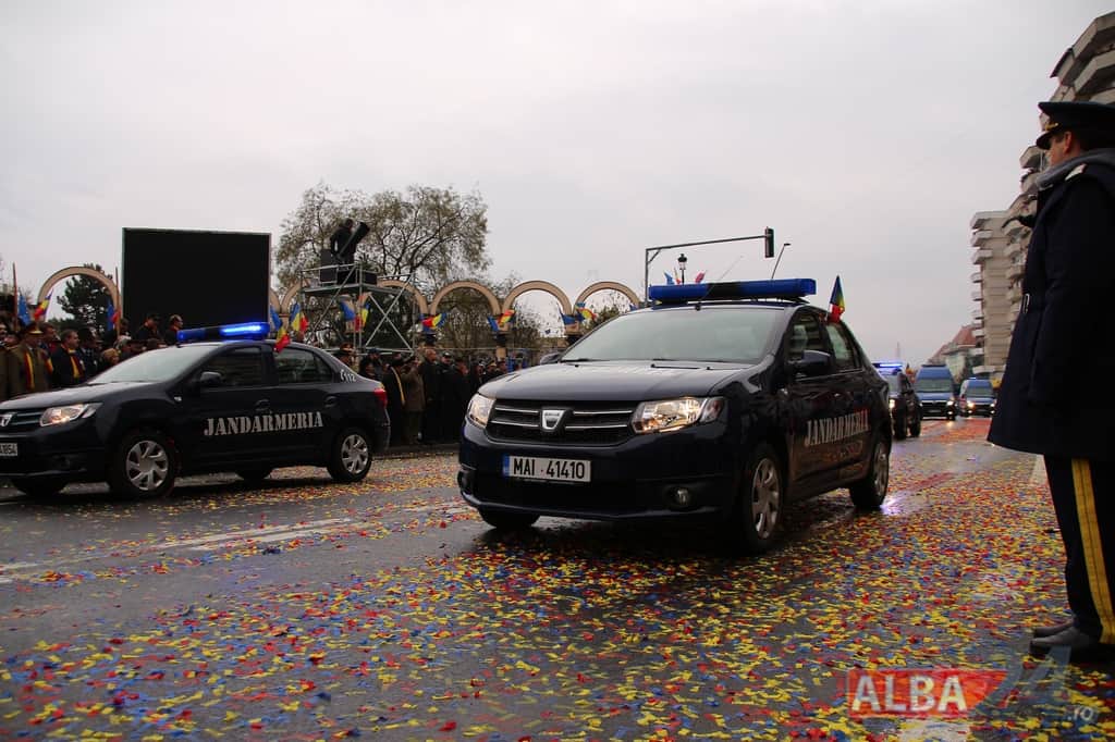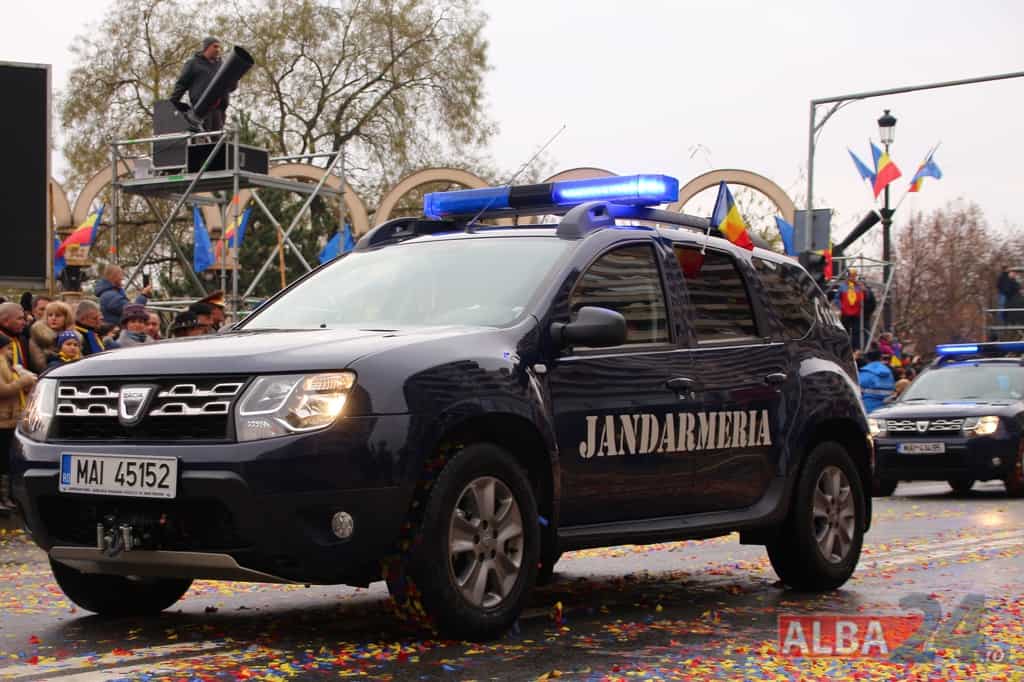 Inspectoratul Judeţean de Jandarmi Alba – aproximativ 40 de jandarmi, 9 autospeciale (Dacia Duster, Dacia Logan, Opel Movano)