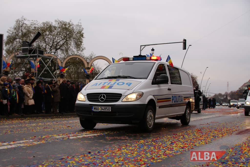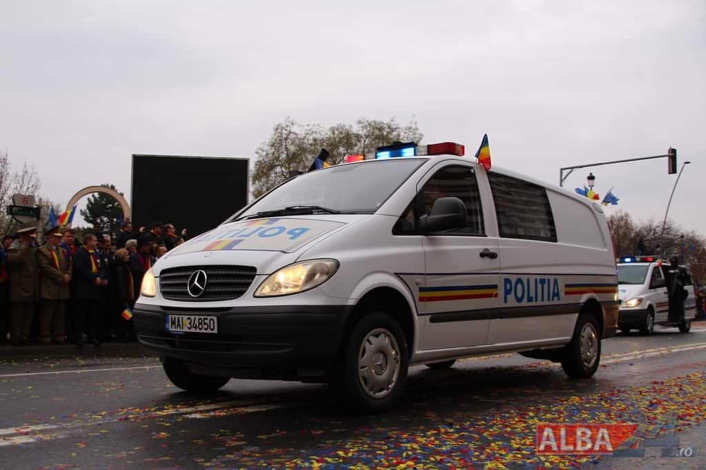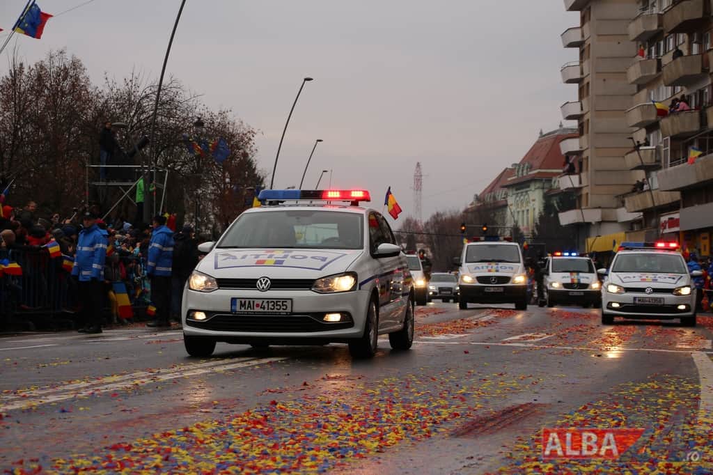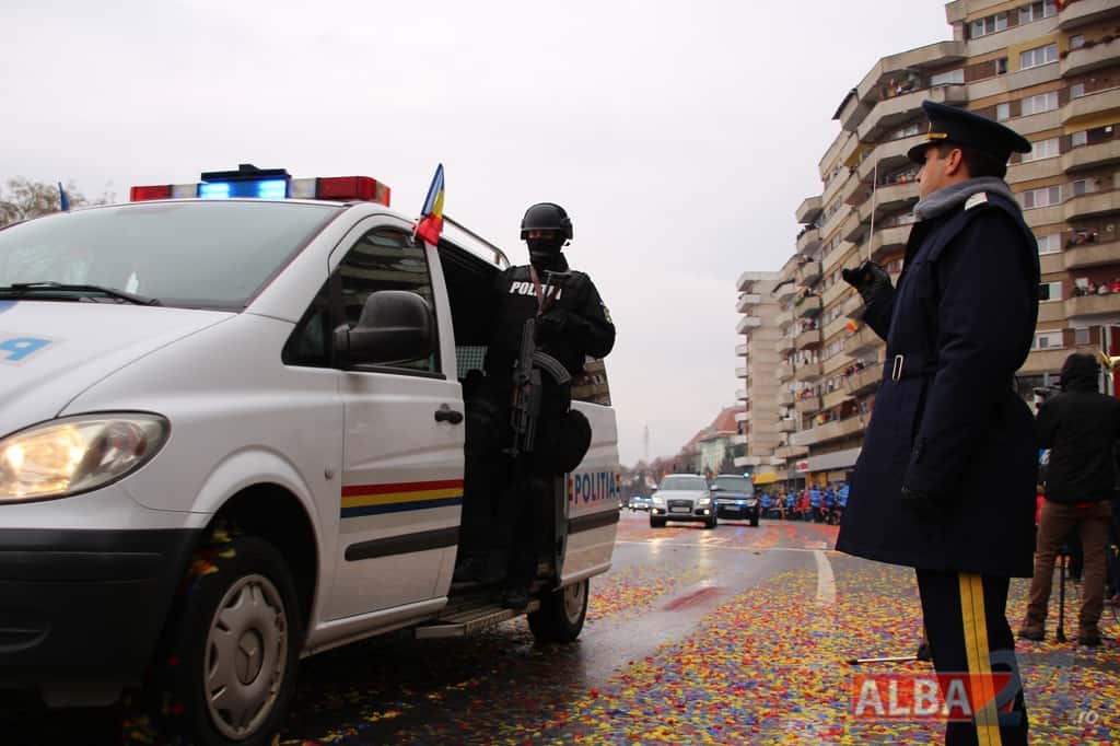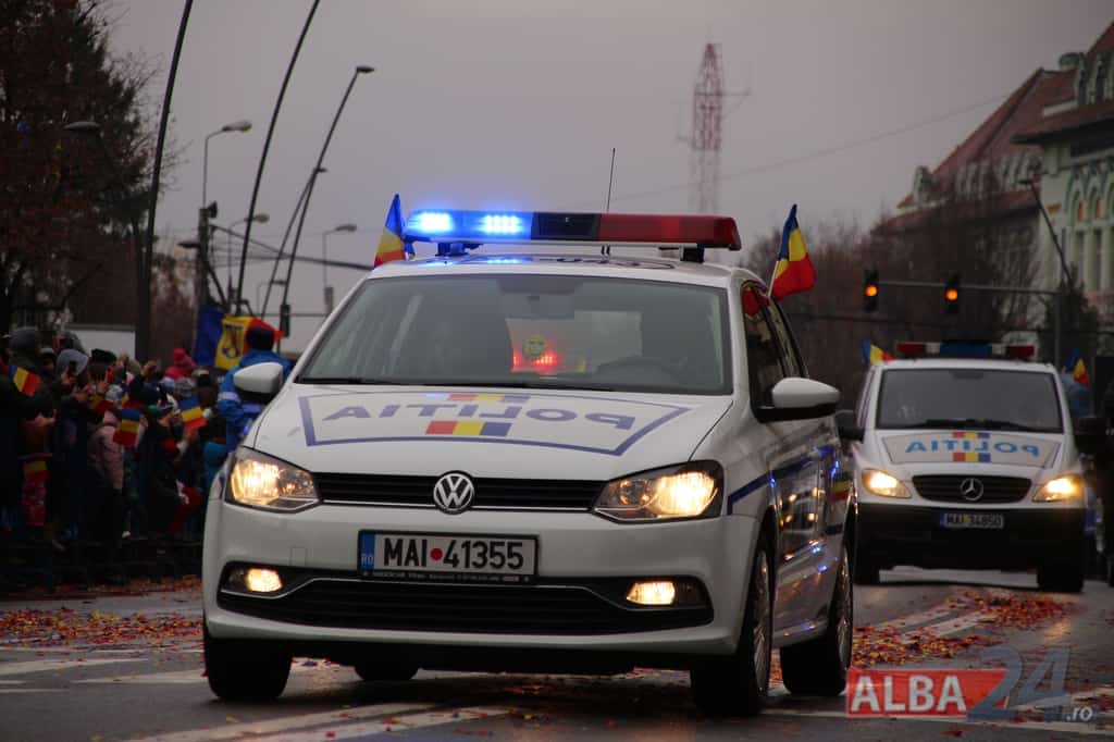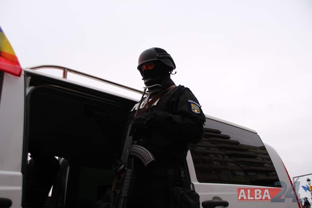Inspectoratul Judeţean de Poliţie Alba – 9 poliţişti şi 6 autospeciale din dotarea formaţiunilor de poliţiei rutieră, ordine publică, acţiuni speciale şi criminalistică