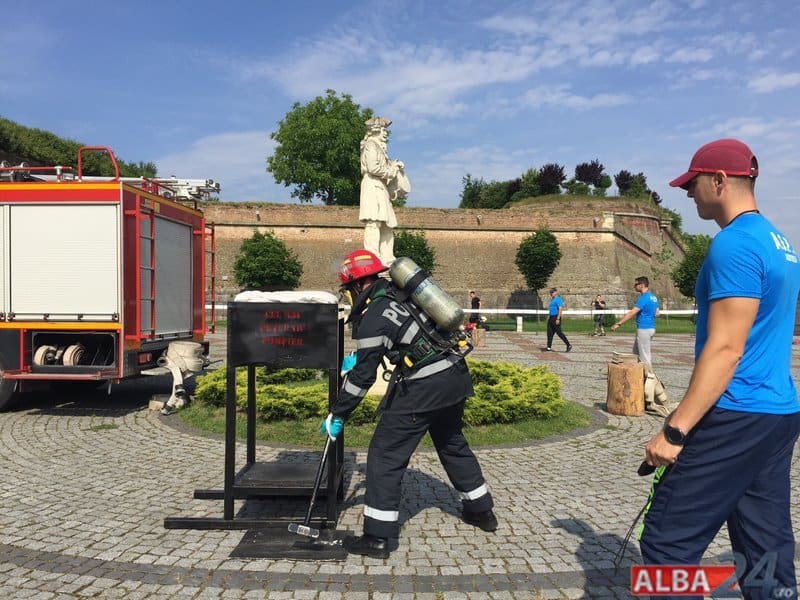 FOTO-VIDEO: Etapa națională a competiției ”Cel mai Puternic Pompier”, la Alba Iulia, în Cetatea Alba Carolina