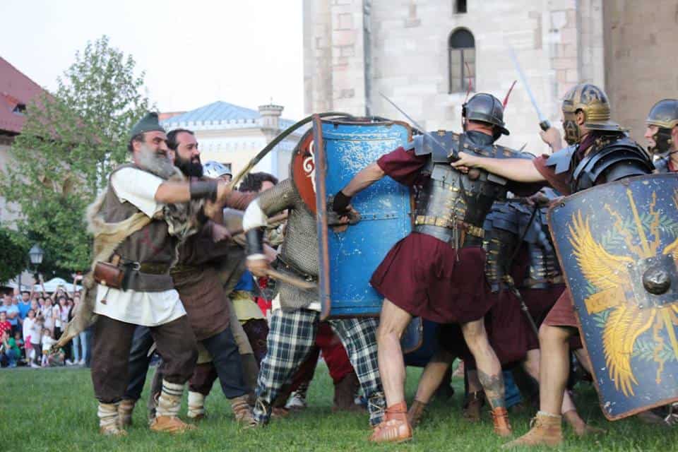 Festivalul Roman Apulum 2018 continuă la Alba Iulia cu bătălia între trupele romane și războinicii daci – Războaiele lui Domițian cu dacii, iar de la ora 21:00, cei prezenți pe esplanada Catedralei Romano-Catolice din Cetatea Alba Carolina au putut urmări un moment de dansuri antice, susținut de Magna Nemesis și Eurythmia.