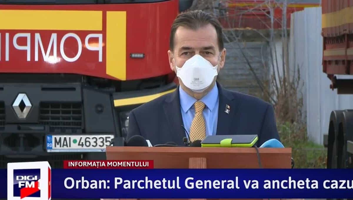 Premierul Ludovic Orban afirmă că este nevoie de mobilizarea specialiştilor de la Parchetul General şi de la Poliţie pentru a se stabili cauza şi responsabilităţile incendiului de la Spitalul Judeţean din Piatra Neamţ, unde 10 pacienţi aflaţi la ATI au murit arşi.