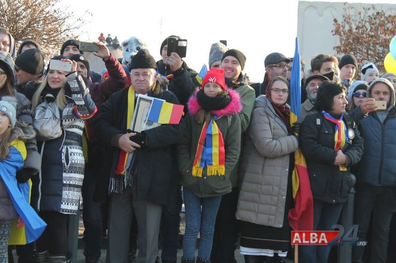 La vederea lui Klaus Iohannis, o parte dintre românii prezenți la Alba Iulia au început să scandeze sloganuri anit-PSD.