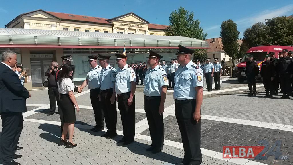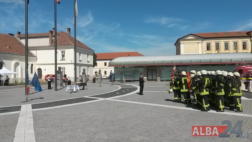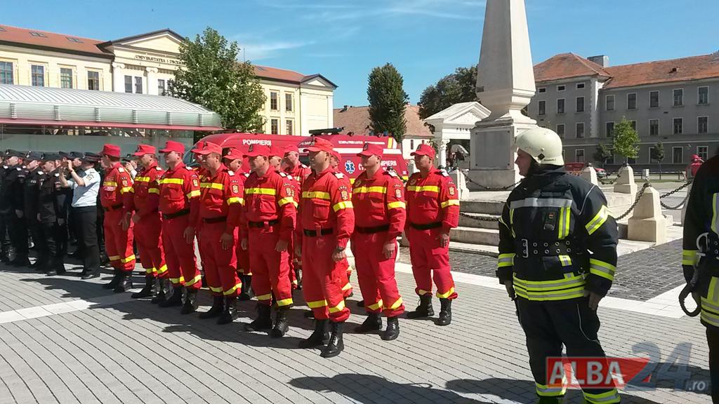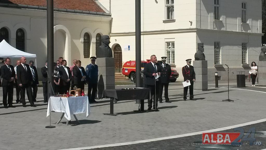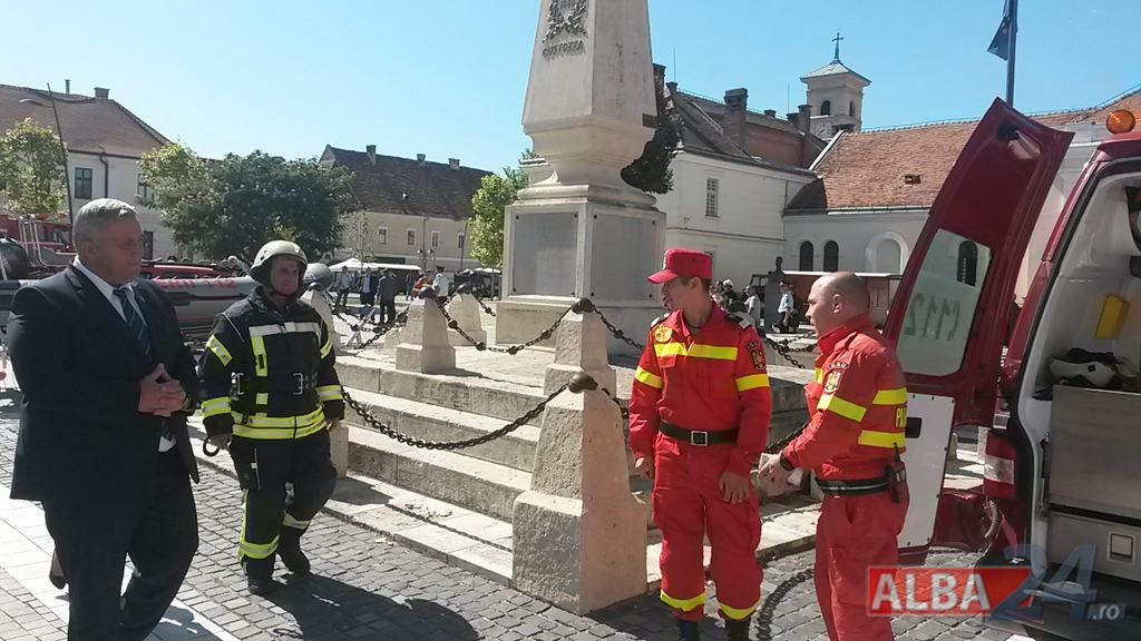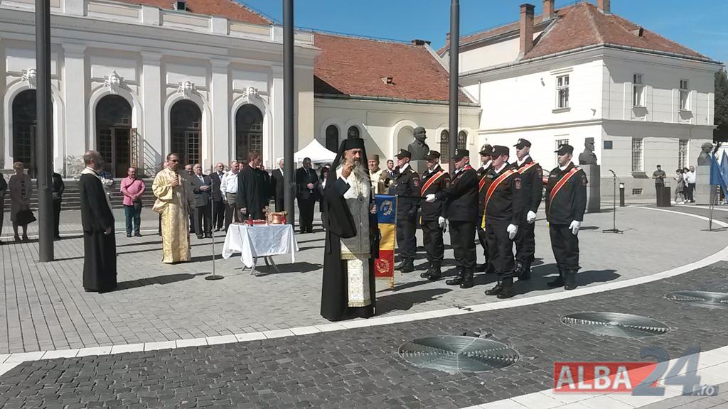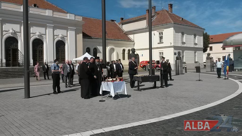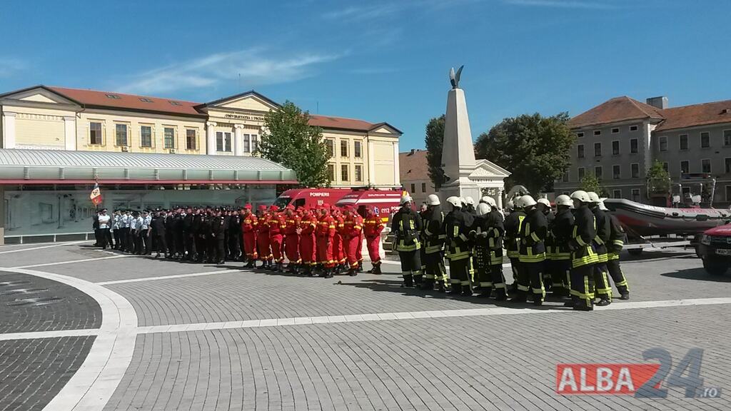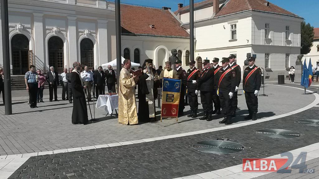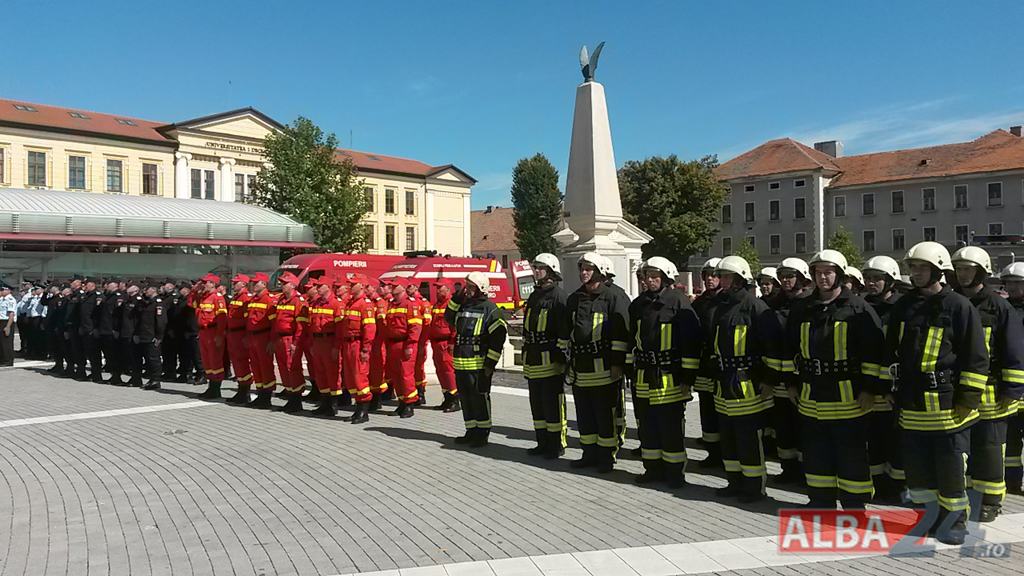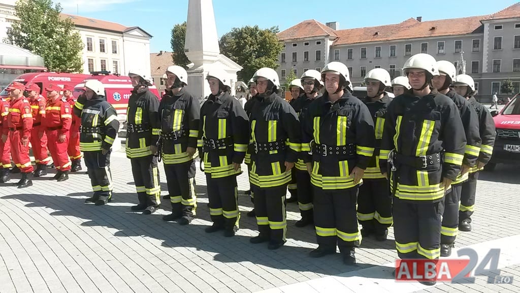 FOTO-VIDEO: Sfințirea noului Drapel de Luptă al ISU Alba, la Alba Iulia. Ceremonial militar și religios, expoziție de tehnică și exerciții demonstrative