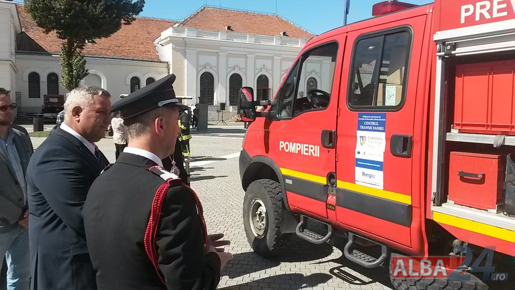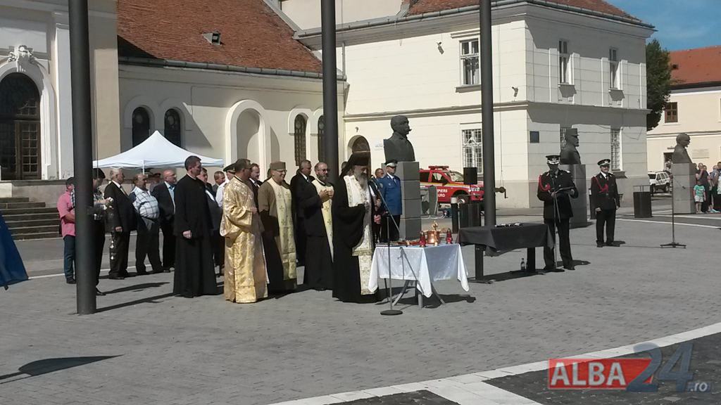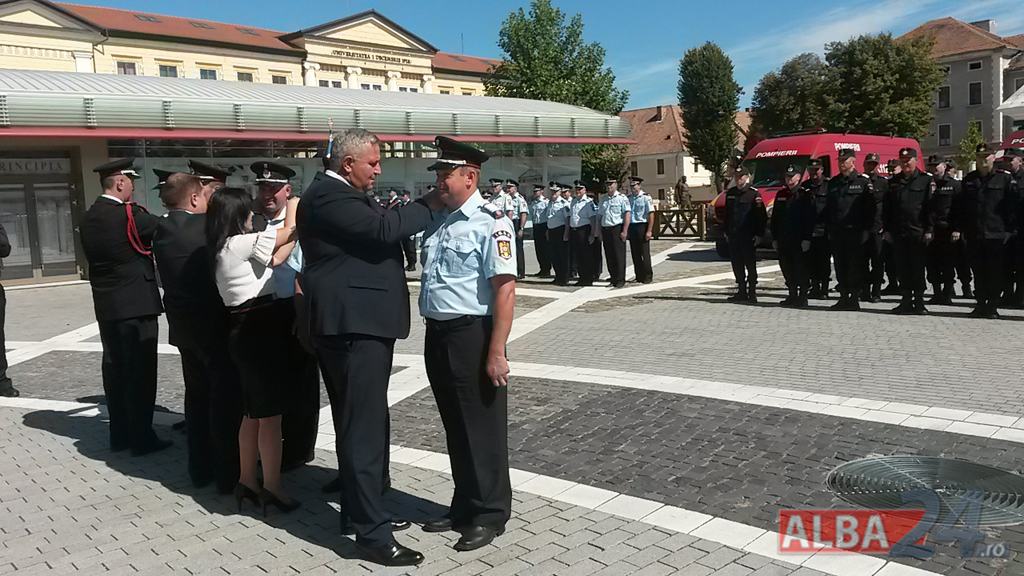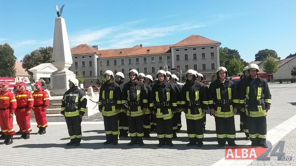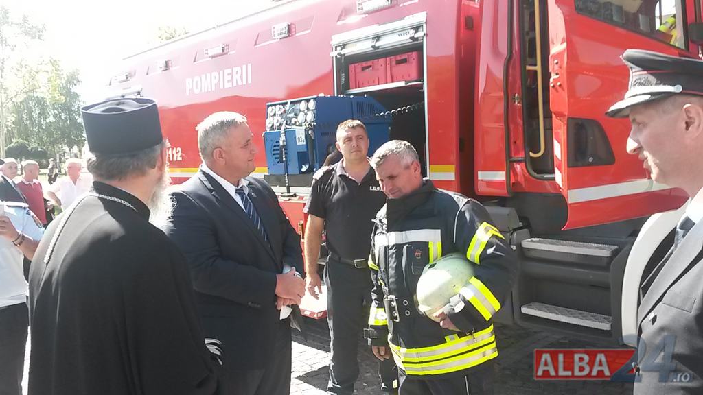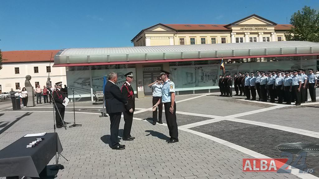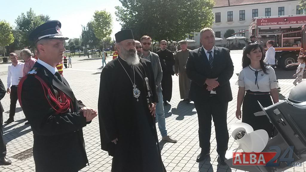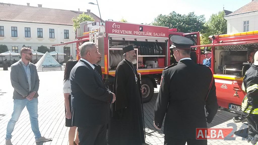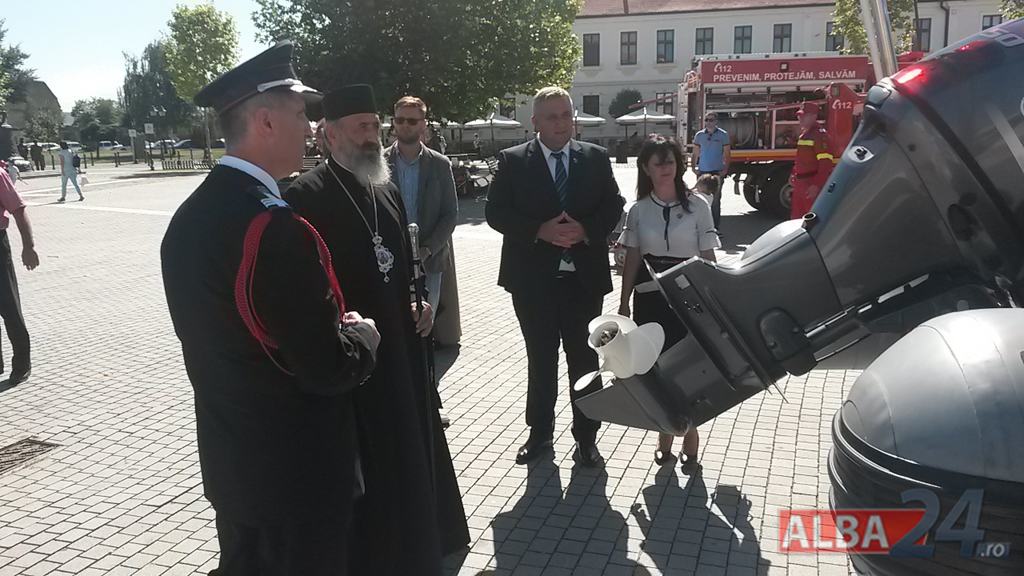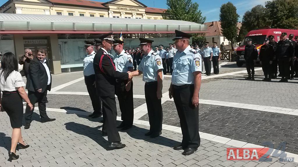 FOTO-VIDEO: Sfințirea noului Drapel de Luptă al ISU Alba, la Alba Iulia. Ceremonial militar și religios, expoziție de tehnică și exerciții demonstrative