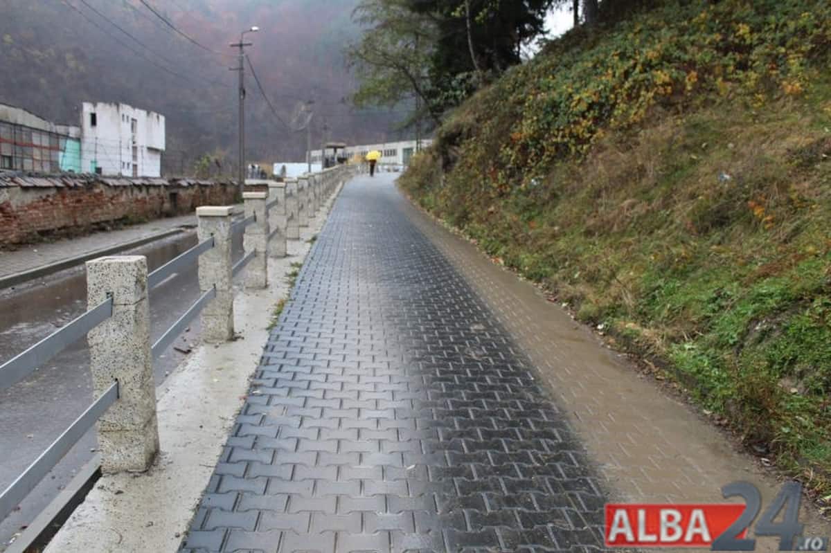 Au fost executate lucrări de refacere a trotuarului cu piatră cubică, de montare a pavajului (dale vibropresate din beton) pentru accesul pietonal, potrivit informaţiilor oferite de architect şef Victor Sava, Serviciul Urbanism, din cadrul primăriei. Tot în cadrul investiției au fost incluse și lucrările de canalizare pluvială cu rigolă de acostament.