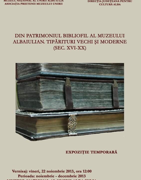 Printre cărţile expuse se află traducerile şi imprimările textelor biblice în limba română a unor exemplare de tipărituri cum sunt Noul Testament de la Bălgrad (1648), Psaltirea bălgrădeană (1651), Biblia de la Bucureşti (1688), Biblia de la Blaj (1795), Biblia de la Sibiu (1856-1858).