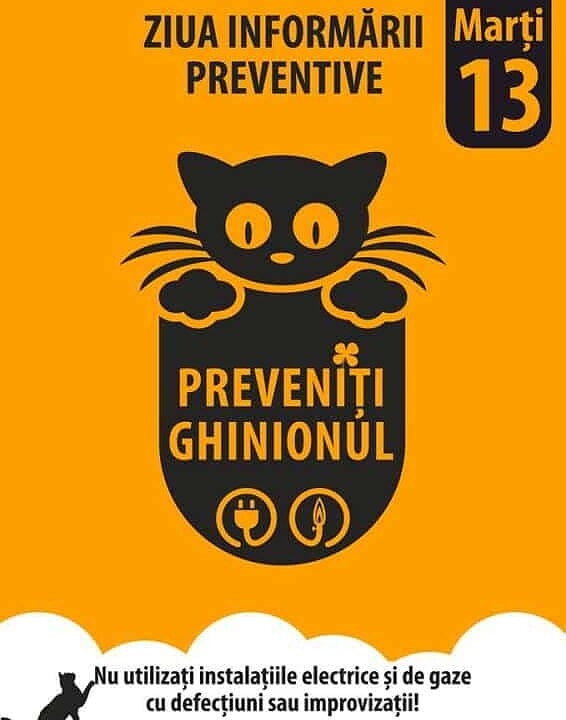Desfăşurate sub sloganul „Preveniţi ghinionul”, având ca logo pisica neagră, activităţile informativ-educative ce vor avea loc cu această ocazie, cu sprijinul E.ON România, urmăresc conştientizarea cetăţenilor asupra pericolelor la care se pot expune în cazul nerespectării măsurilor şi regulilor de comportare specifice tipurilor de situaţii de urgenţă. Cetăţeanul rămâne veriga extrem de importantă în procesul de gestionare a situaţiilor de urgenţă. Rolul său devine unul major prin însuşirea şi aplicarea informaţiilor care vin din partea instituţiilor abilitate, manifestând responsabilitate în relaţiile cu familia, comunitatea şi mediul înconjurător, transmite ISU.