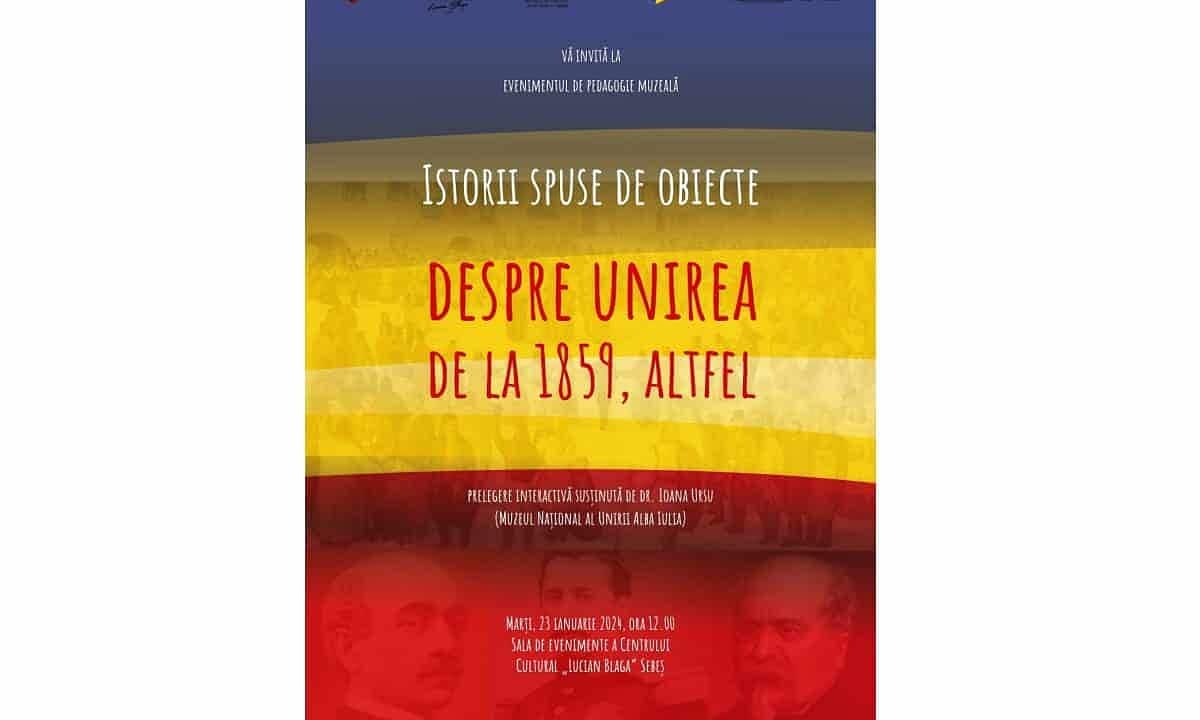 Marți, 23 ianuarie 2024, începând cu ora 12.00, în sala de spectacole a Centrului Cultural „Lucian Blaga” Sebeș va avea loc un eveniment dedicat zilei de 24 Ianuarie 1859, intitulat „Istorii spuse de obiecte. Despre Unirea de la 1859, altfel”, organizat de Centrul Cultural „Lucian Blaga” Sebeș, prin Muzeul Municipal „Ioan Raica”, în parteneriat cu Muzeul Național al Unirii Alba Iulia.